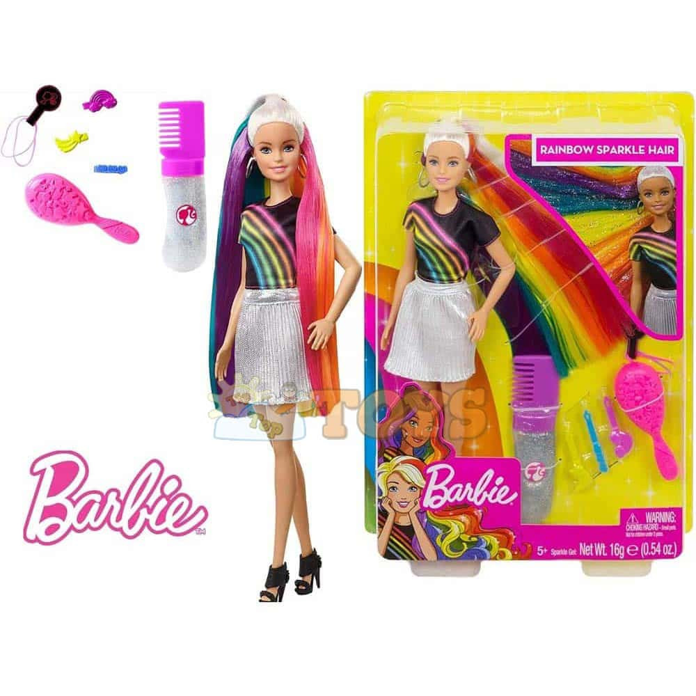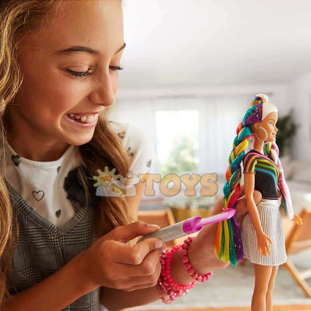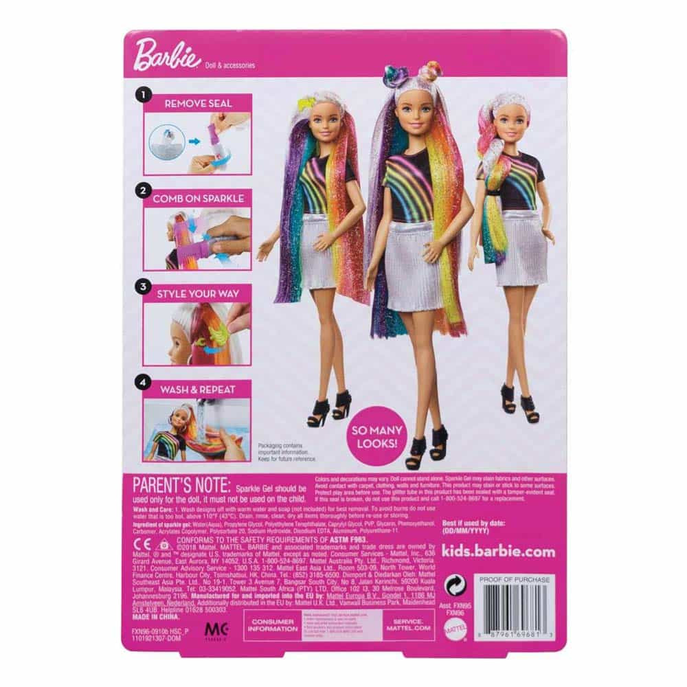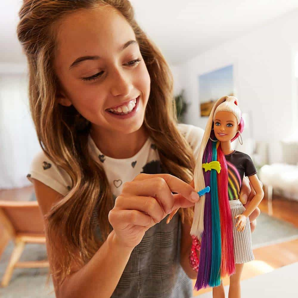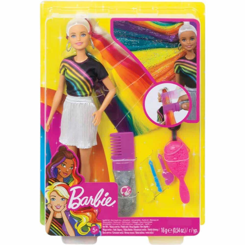 Mattel FXN96 Mattel FXN96 Barbie Doll with Shiny Rainbow Hair and Paint Set