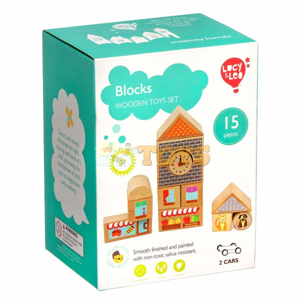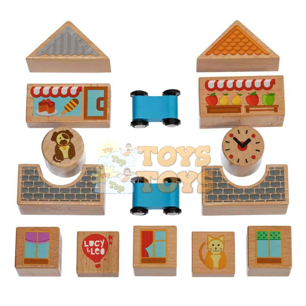 Lucy&Leo LL166 15-piece small wooden building set with 2 cars