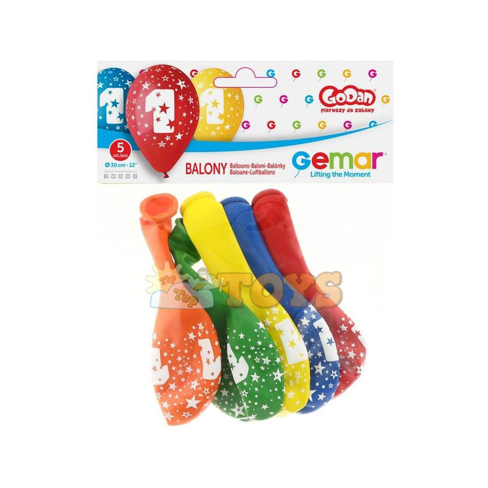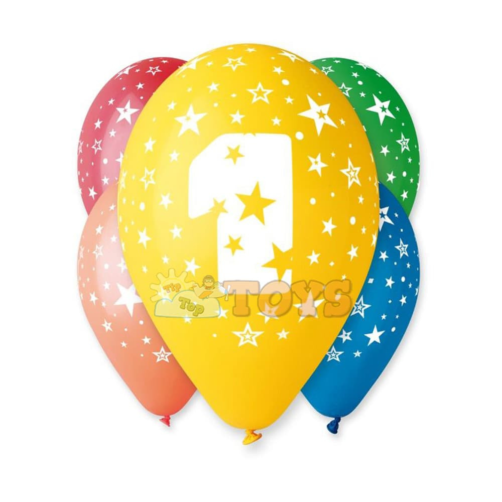 Set of balloons inscribed with the number 1 for birthdays 5pcs 30cm