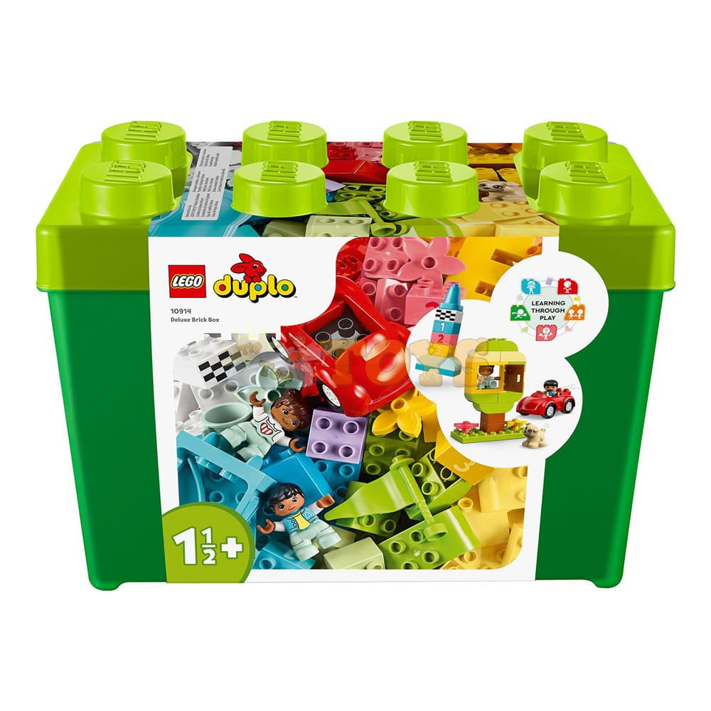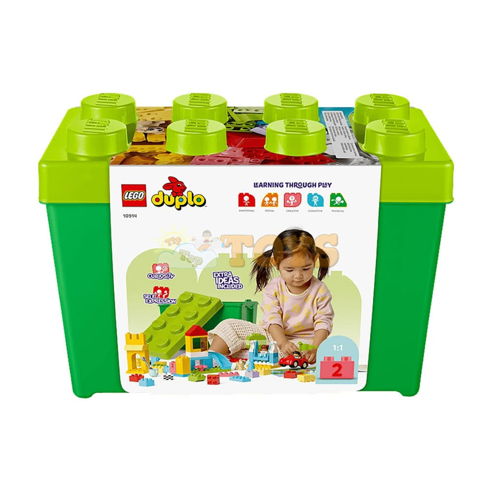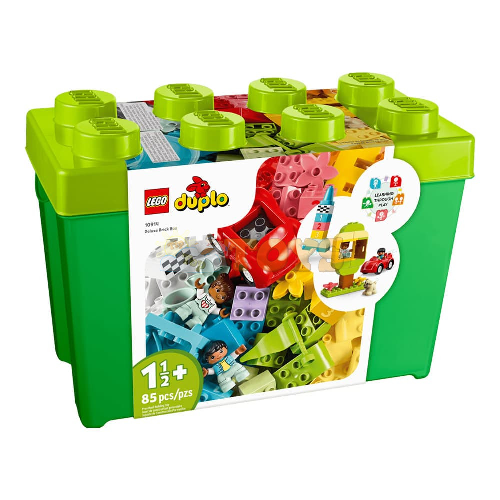 Endless Creativity and Fun for Toddlers The LEGO® DUPLO® Deluxe Brick Box (10914) is an 85-piece building toy designed to excite, engage and educate curious kids aged 18 months and up. With an inviting variety of colorful toddler-friendly bricks and special pieces, it’s the perfect way to inspire young minds with playful learning. Lots to Build, Imagine and Learn This collection of vibrant bricks, recognizable objects and 1–5 number-bricks will inspire kids to build, customize and combine fun models, including a castle, slide, tree and a car. Once kids discover the joy of creative building, anything is possible. Easy Storage and On-the-Go Fun When playtime is over, all the bricks, pieces, figures, and numbers can be neatly stored in the durable container with a large LEGO brick lid. It’s perfect for quick cleanup and taking the fun wherever you go! Developmental Learning for Preschoolers With vibrant, easy-to-grip pieces that invite hands-on exploration, the DUPLO Classic Deluxe Brick Box offers toddlers a creative-play experience that also builds skills. As they explore the open-ended creative fun, children also develop their fine motor skills, hand-eye coordination and problem-solving abilities. Birthday and Christmas Gifts for Growing Minds LEGO DUPLO products are specifically crafted to support the requirements of young children through a wide variety of hands-on activities and play. Parents and caregivers can share these precious moments as their little builders explore and learn. The DUPLO Classic range maximizes kids’ creative potential with an endless supply of inspiration and ideas contained in every box.