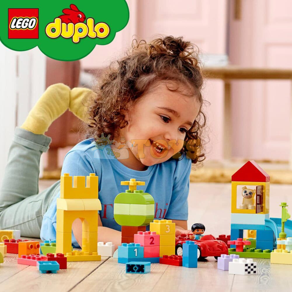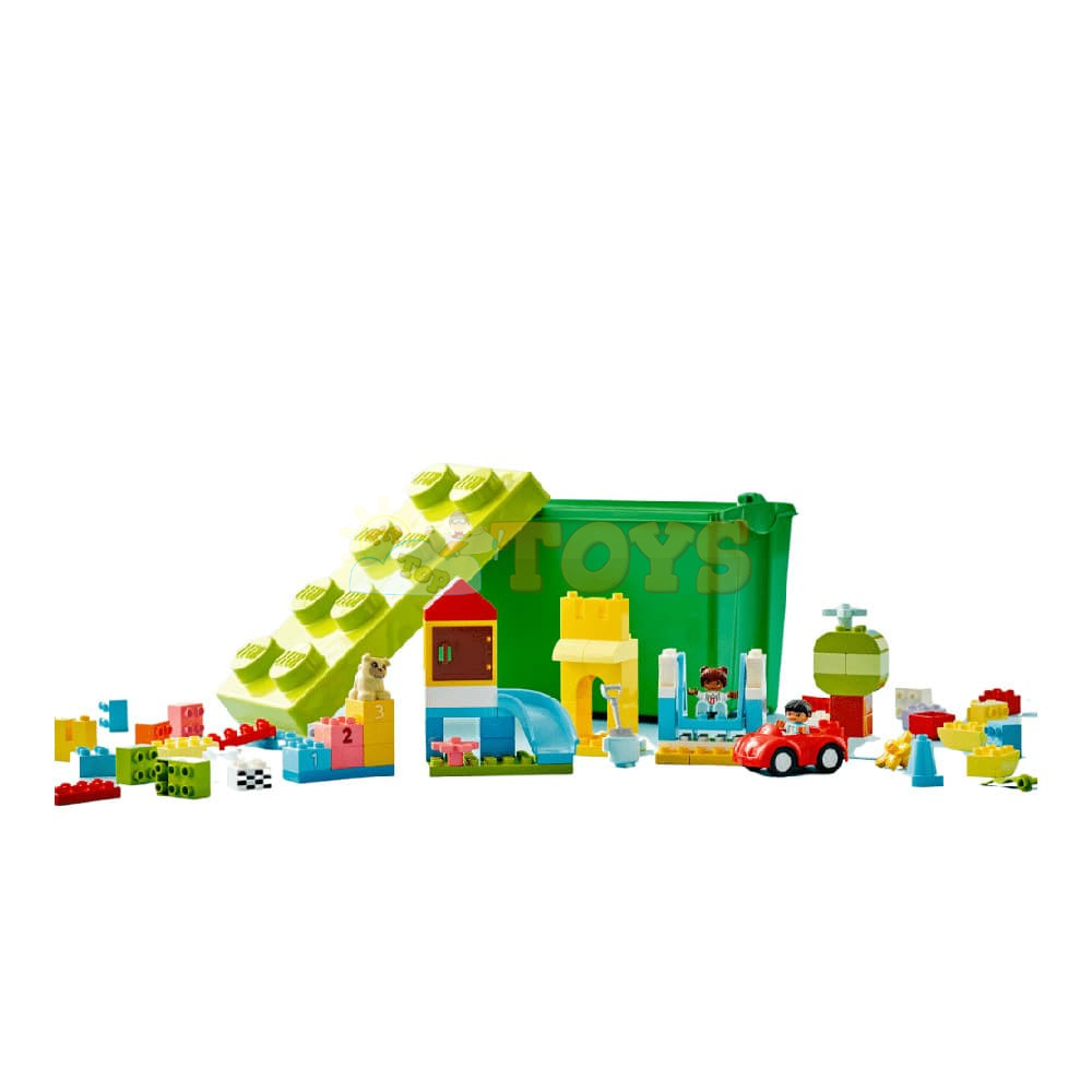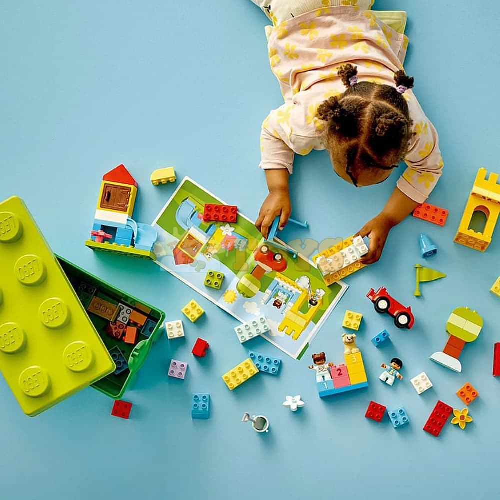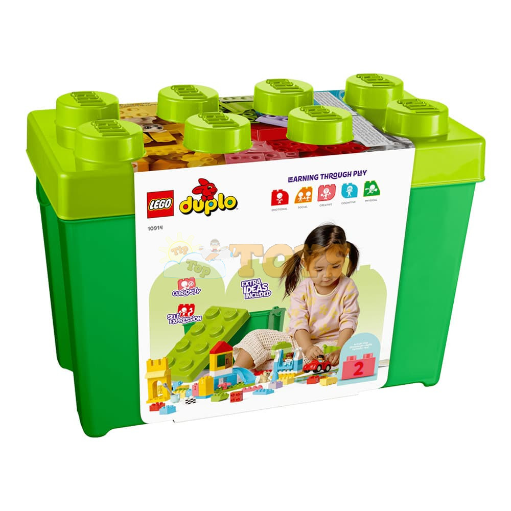 Endless Creativity and Fun for Toddlers The LEGO® DUPLO® Deluxe Brick Box (10914) is an 85-piece building toy designed to excite, engage and educate curious kids aged 18 months and up. With an inviting variety of colorful toddler-friendly bricks and special pieces, it’s the perfect way to inspire young minds with playful learning. Lots to Build, Imagine and Learn This collection of vibrant bricks, recognizable objects and 1–5 number-bricks will inspire kids to build, customize and combine fun models, including a castle, slide, tree and a car. Once kids discover the joy of creative building, anything is possible. Easy Storage and On-the-Go Fun When playtime is over, all the bricks, pieces, figures, and numbers can be neatly stored in the durable container with a large LEGO brick lid. It’s perfect for quick cleanup and taking the fun wherever you go! Developmental Learning for Preschoolers With vibrant, easy-to-grip pieces that invite hands-on exploration, the DUPLO Classic Deluxe Brick Box offers toddlers a creative-play experience that also builds skills. As they explore the open-ended creative fun, children also develop their fine motor skills, hand-eye coordination and problem-solving abilities. Birthday and Christmas Gifts for Growing Minds LEGO DUPLO products are specifically crafted to support the requirements of young children through a wide variety of hands-on activities and play. Parents and caregivers can share these precious moments as their little builders explore and learn. The DUPLO Classic range maximizes kids’ creative potential with an endless supply of inspiration and ideas contained in every box.