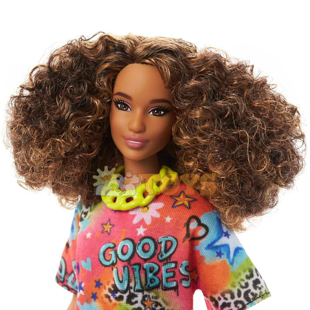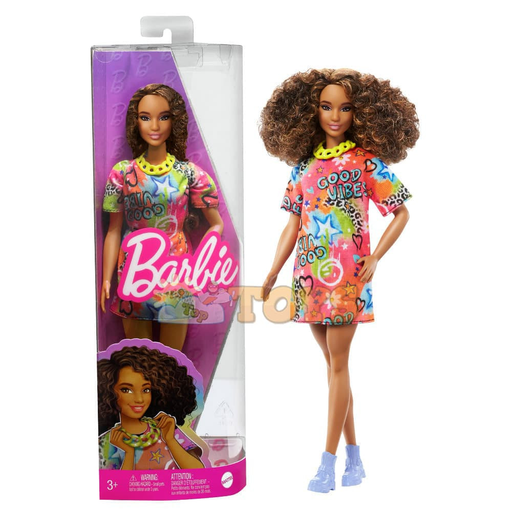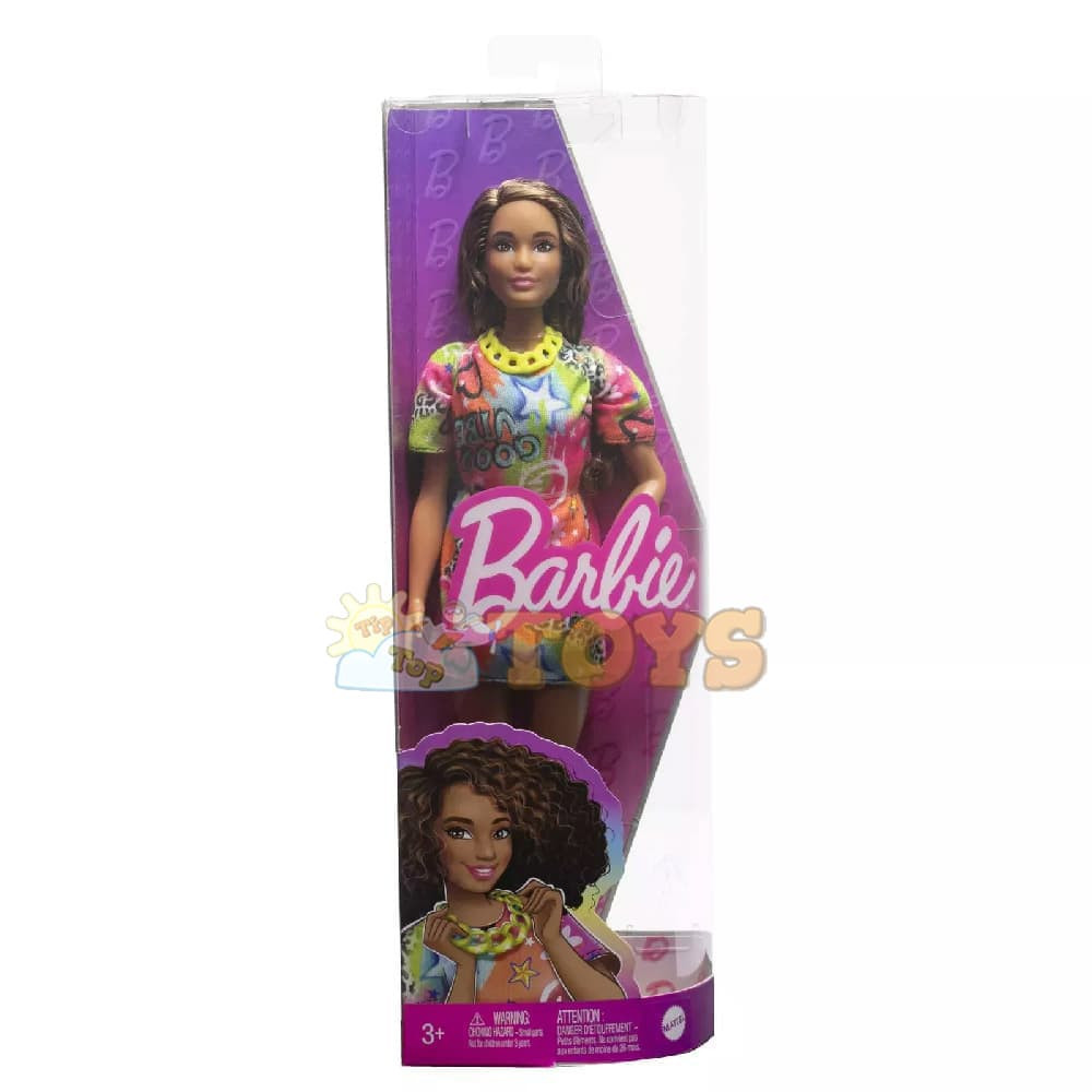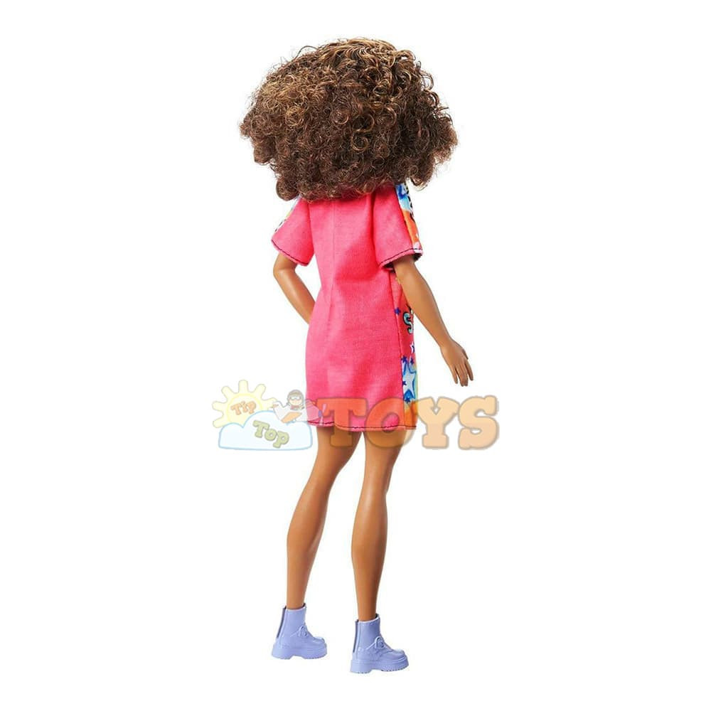 Barbie Fashionistas Doll Graffiti Dress with Curly Brunette Hair HPF77