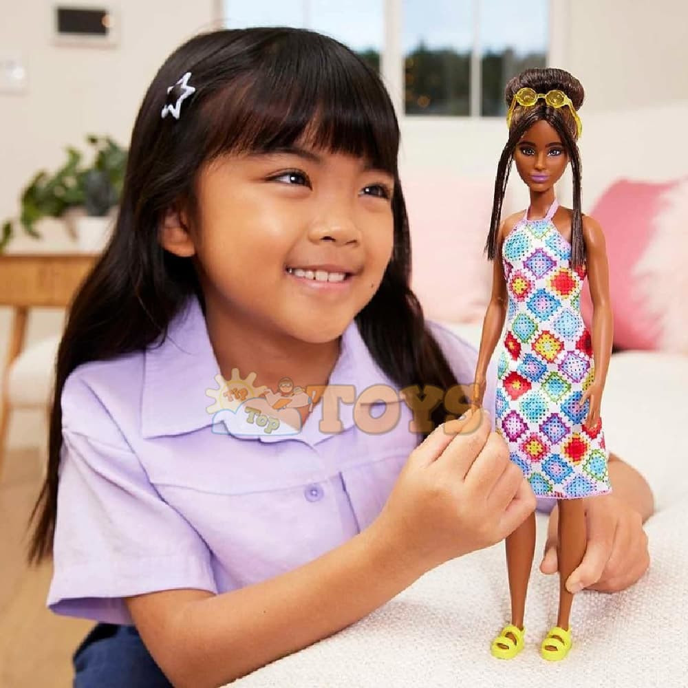 Barbie Fashionista Doll in Colorful Dress with Glasses HJT07 #210