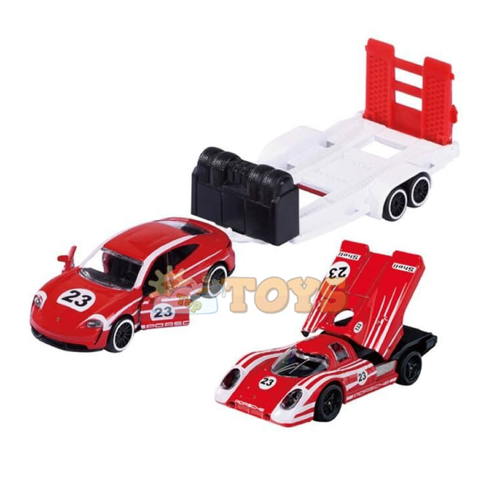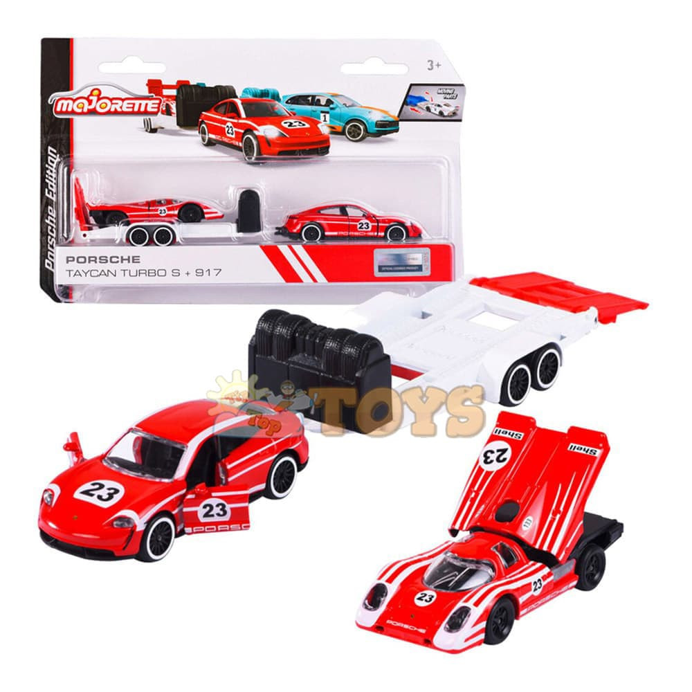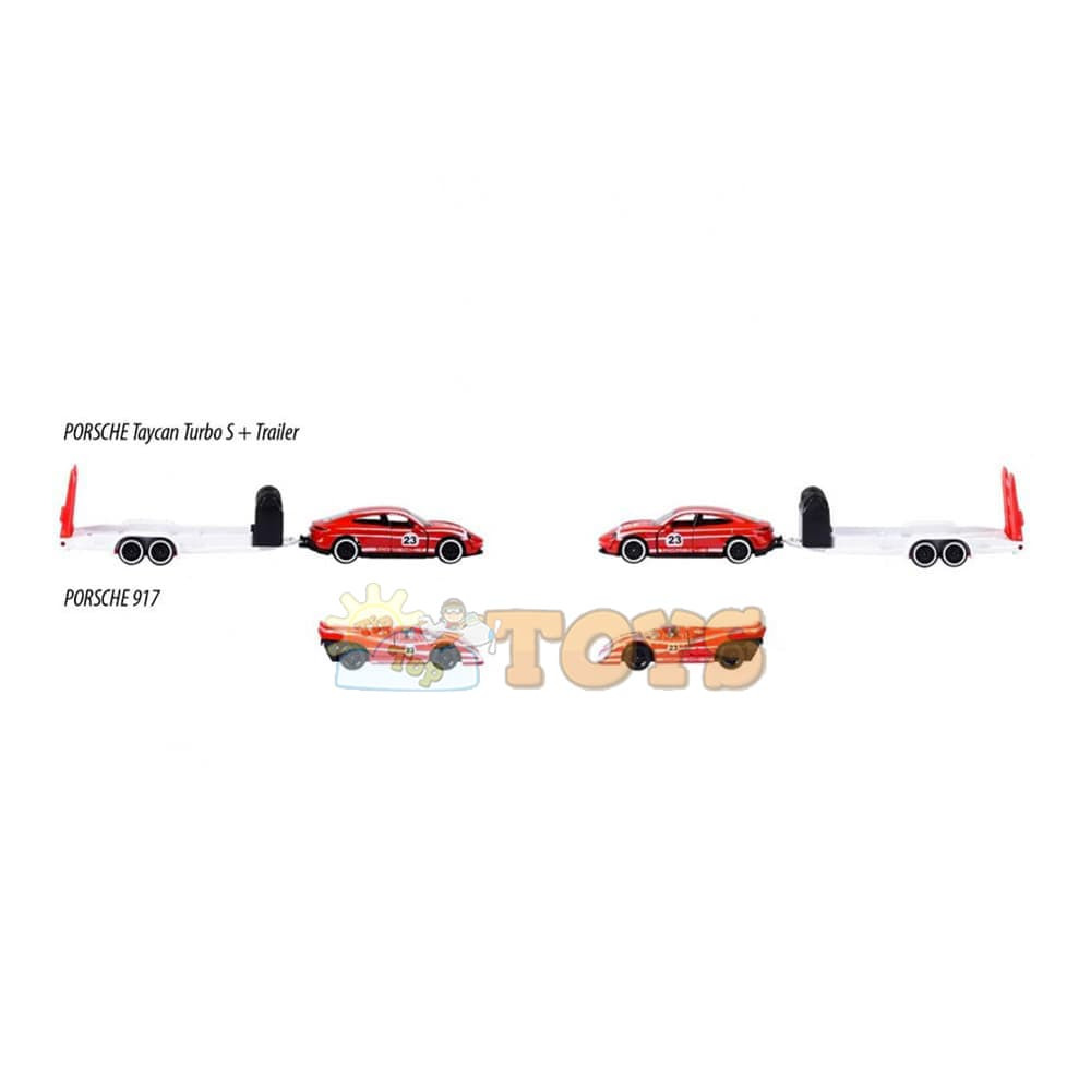 majorette Porsche Taycan Turbo S metal car + 917 trailer