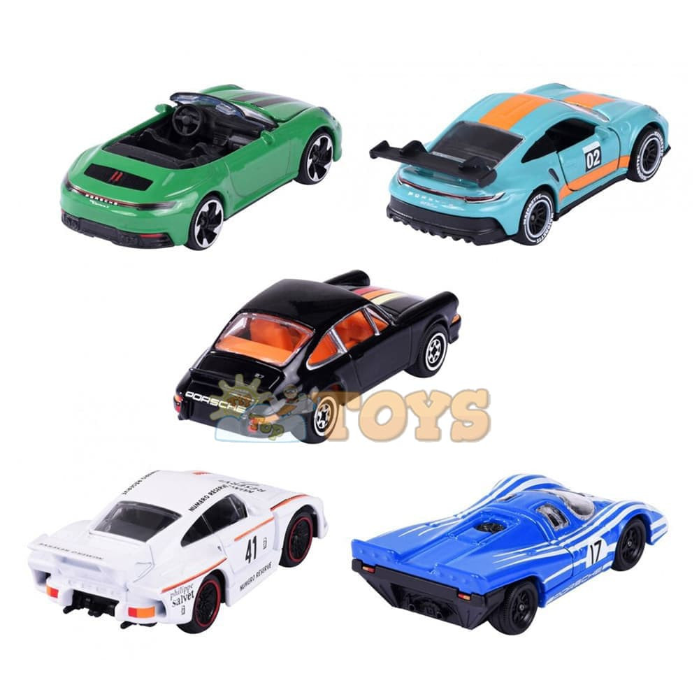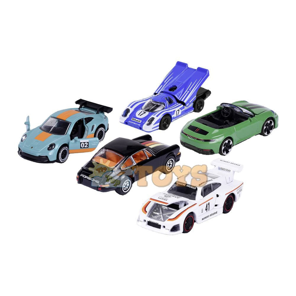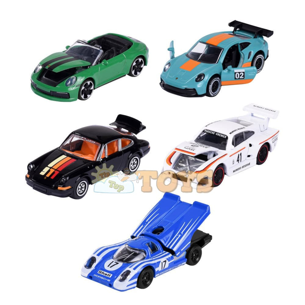 This set of metal cars is a tribute to the Porsche brand, one of the most famous and appreciated car brands in the world. The set contains 5 different cars that represent the evolution and diversity of Porsche models. The cars are 1:64 scale, which means they are about 7 cm long. The cars also have doors that can be opened, showing a well-crafted interior.