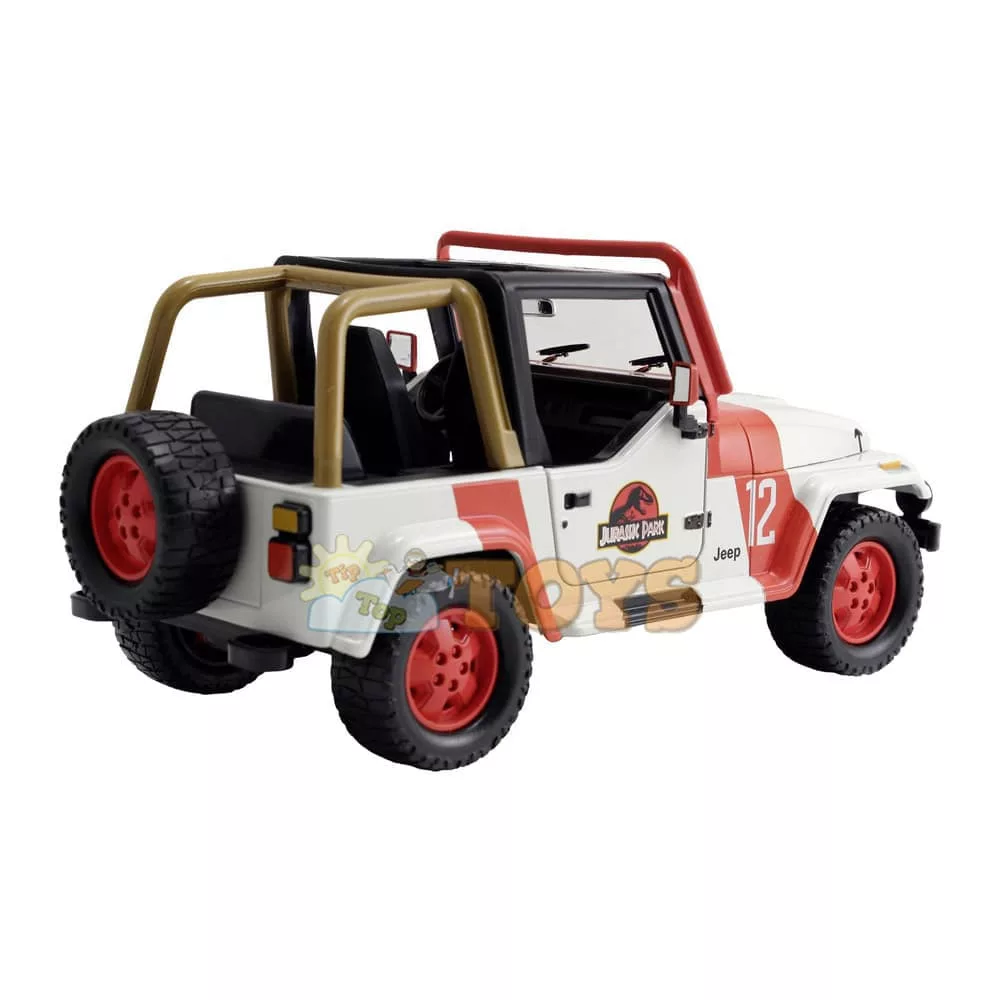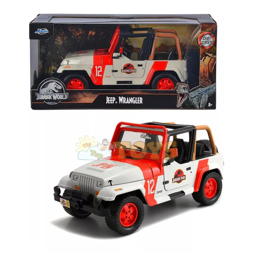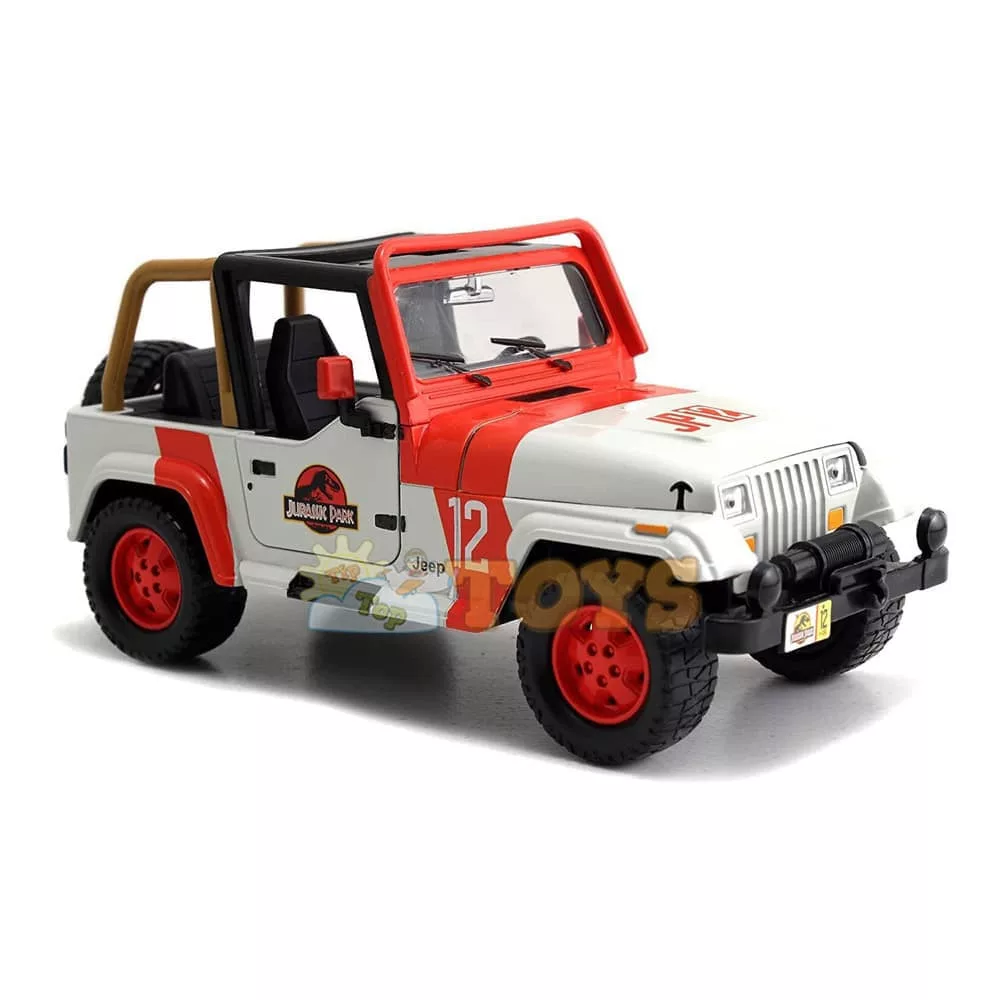 Jada Toys Jeep Wrangler Jurassic World 1:24 Metal Car is a collectible car made of metal, which represents the car used in the movie Jurassic World.