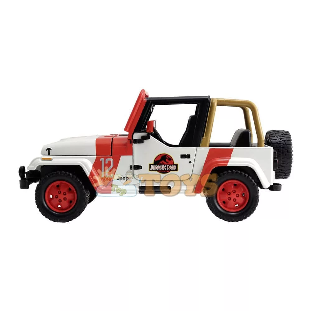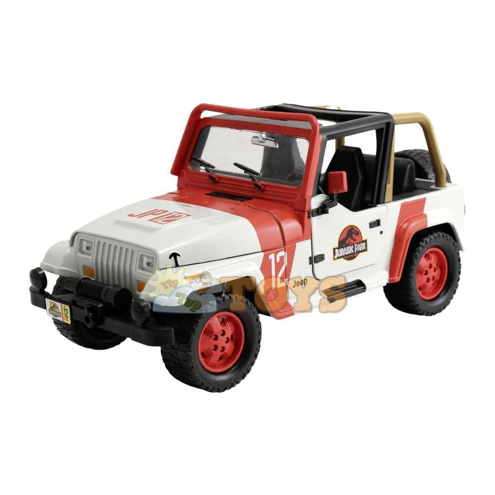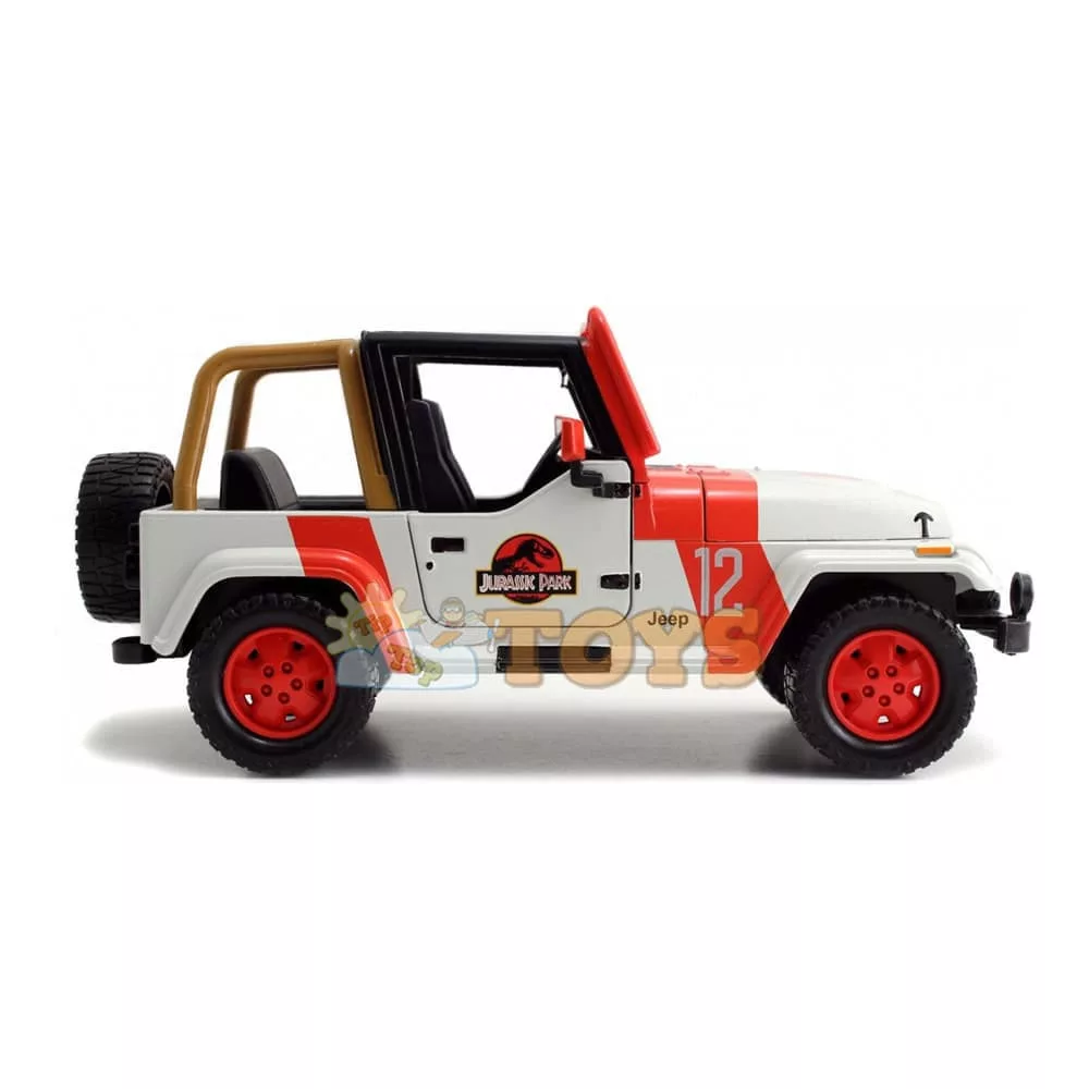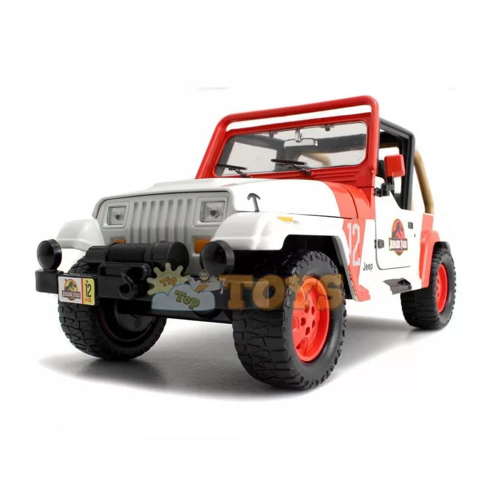 Jada Toys Jeep Wrangler Jurassic World 1:24 Metal Car is a collectible car made of metal, which represents the car used in the movie Jurassic World.