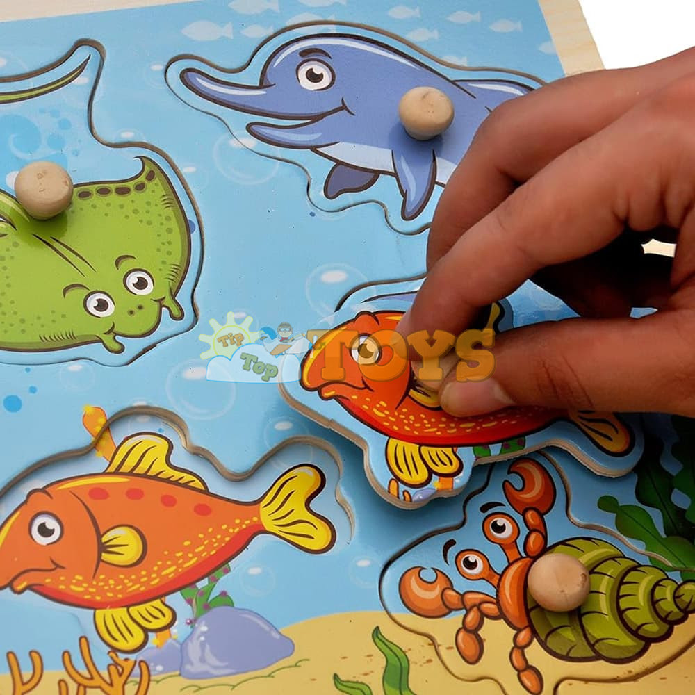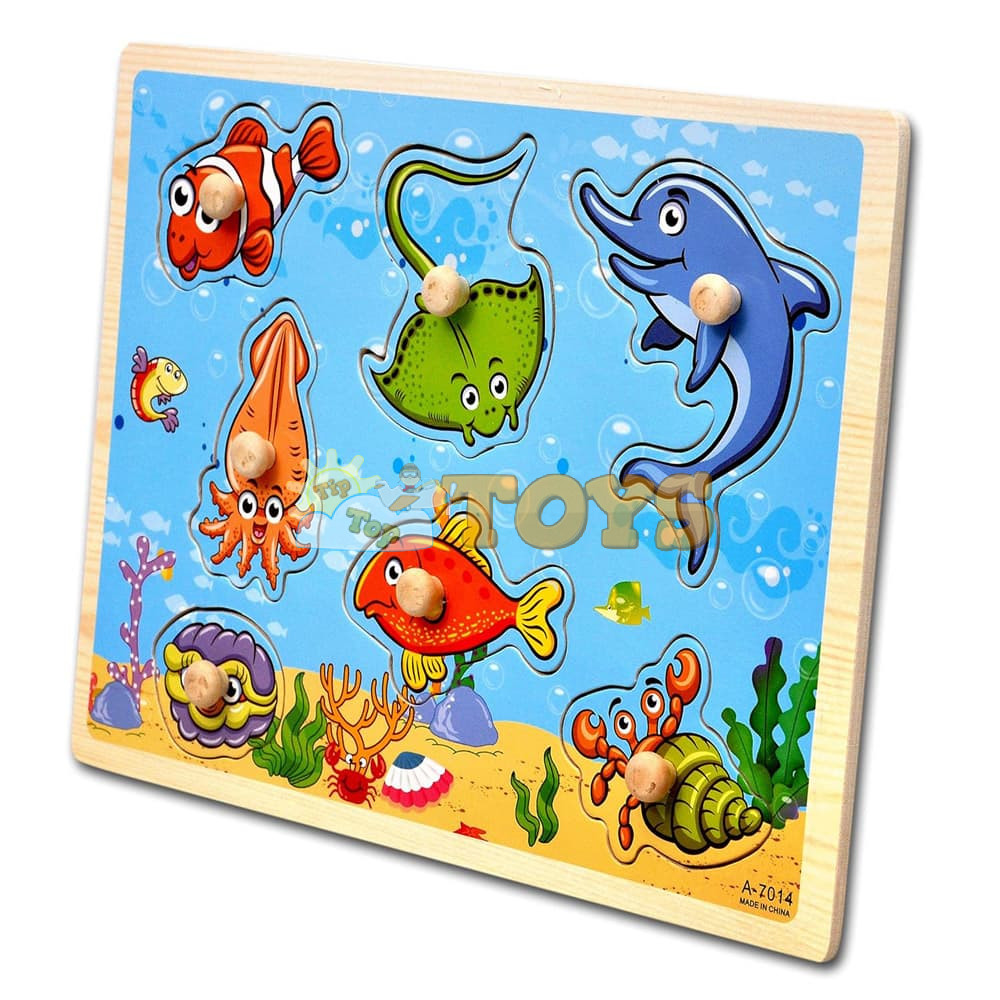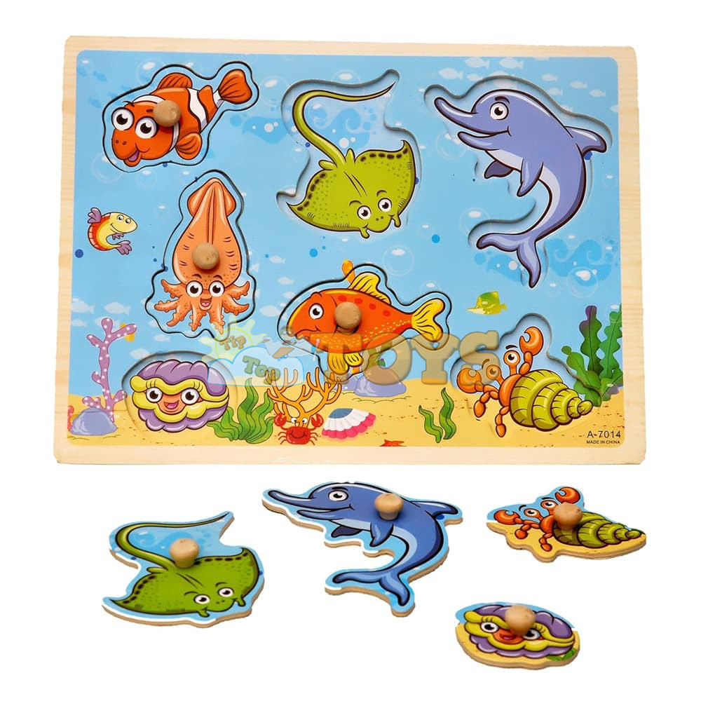 Recessed wooden puzzle Marine animals A-7014 - 7 pieces