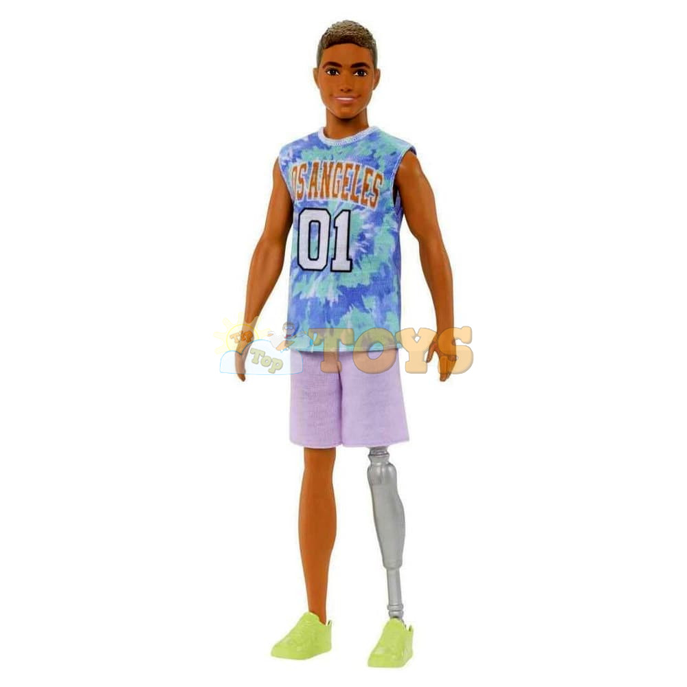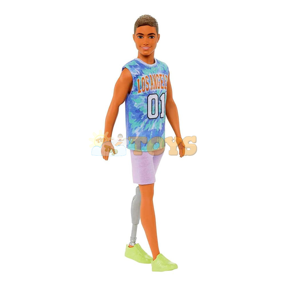 This Ken® doll has brown hair and a prosthetic leg. She wears a Los Angeles tie-dye T-shirt that really brings out her personality!