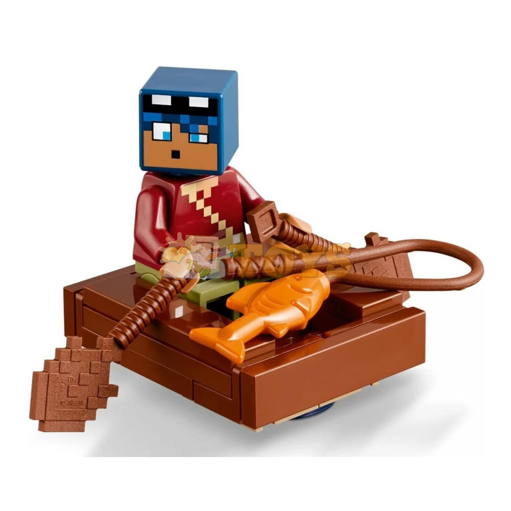 LEGO® Minecraft® Animal Toy - Popular Minecraft accessories include furniture, food, farm crops to harvest, a crafting table, an oven, a chest, a fishing rod (and fish!), a dark oak toy boat and a trident.