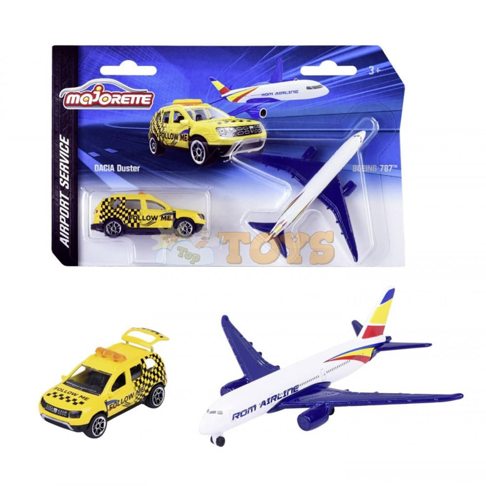 majorette Set of 2 pieces Airport Service Dacia Duster car and Boeing 787 plane