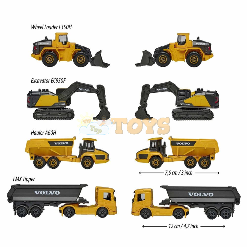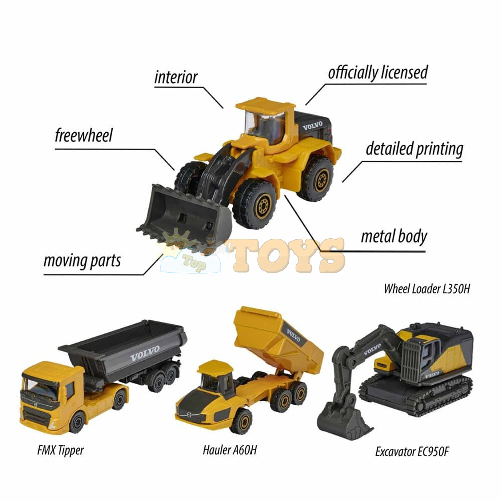 Experience the power and versatility of construction equipment with this exclusive set of 5 metal Volvo Construction Giftpack from Majorette.