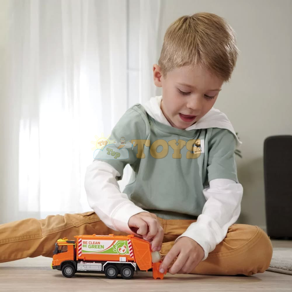 Functional wheels and detailed chassis allow the truck to "roll" on various surfaces, providing a dynamic and realistic play experience. The functionality of the tipper container stimulates the imagination, allowing authentic waste collection scenarios to be recreated while educating children about the importance of recycling and keeping cities clean.