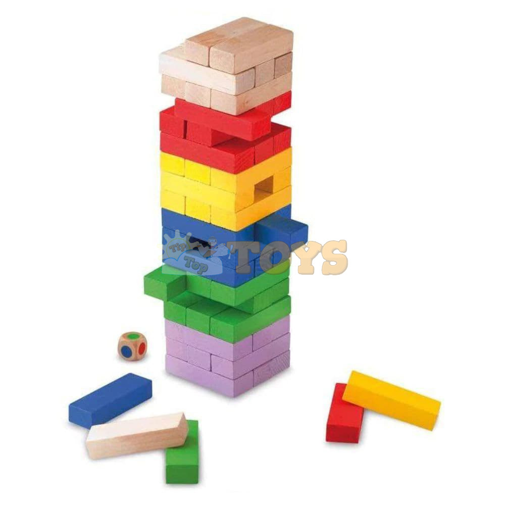 Cayro's Block & Block game is a fun and educational game. It consists of building a tower of colored wooden pieces, which must be placed on top of each other without making them fall.