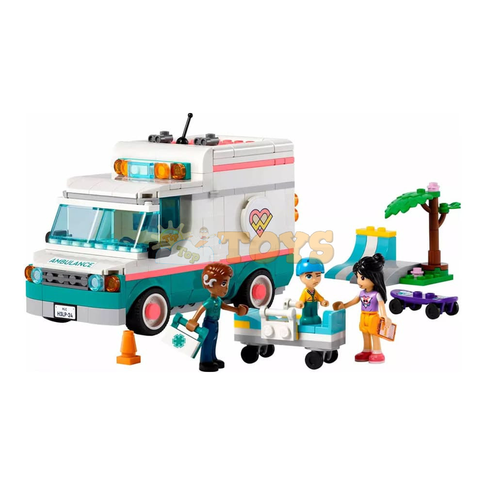 LEGO® Friends Ambulance Set for Kids - This buildable ambulance for girls, boys and kids aged 6+ who love emergency vehicles comes with 3 characters, a skateboard scene and medical accessories.