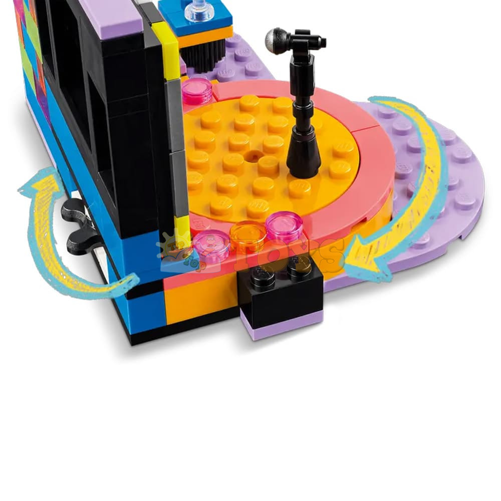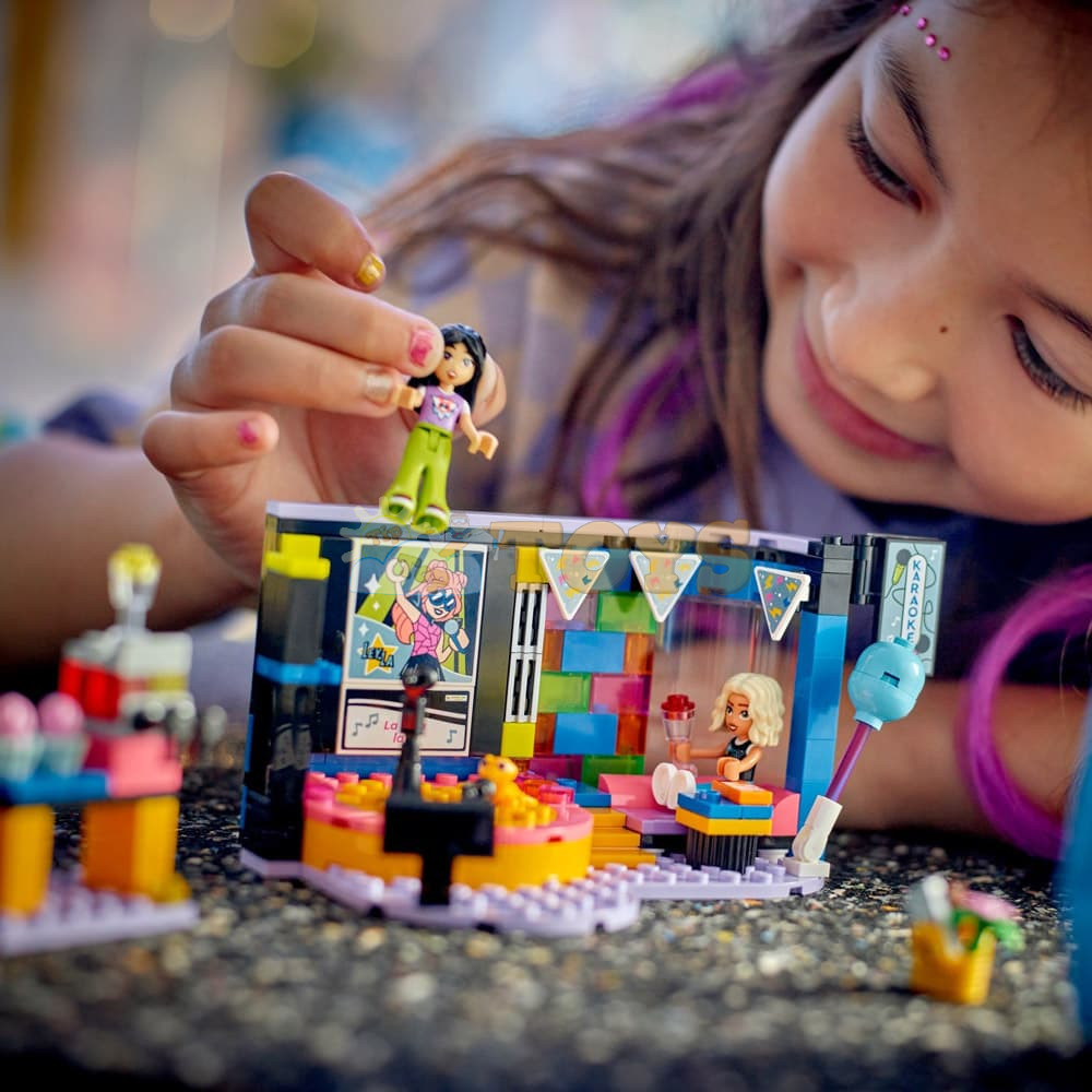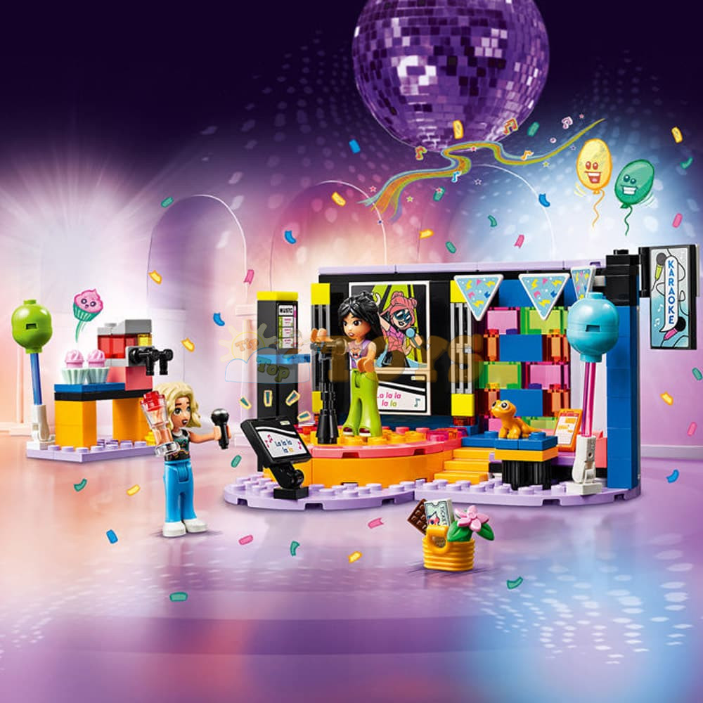 Play a Karaoke Party - LEGO® Friends Karaoke Music Party Set for Girls, Boys and Kids Ages 6+ with 2 Mini-Dolls, 1 Figure gecko and a rotating scene, plus lots of accessories.