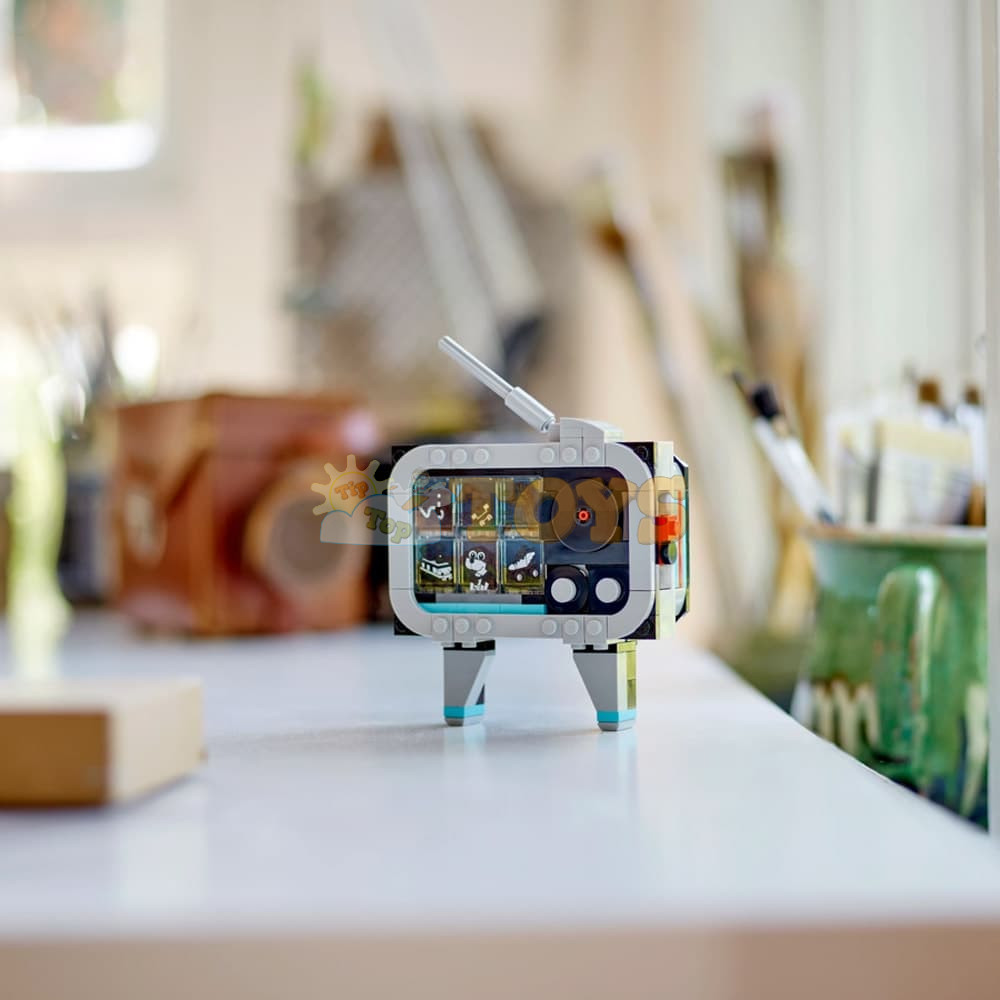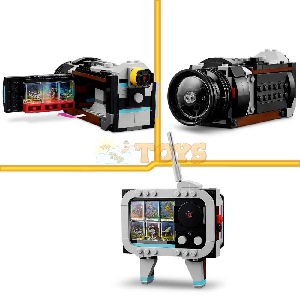 The LEGO® Creator 3in1 Retro Camera set gives kids the opportunity to enjoy 3 different building and play experiences using the same bricks. They can build a kids camera, then rebuild it into a retro video camera or retro TV with antenna. All 3 models are perfect to display on children's shelves.
