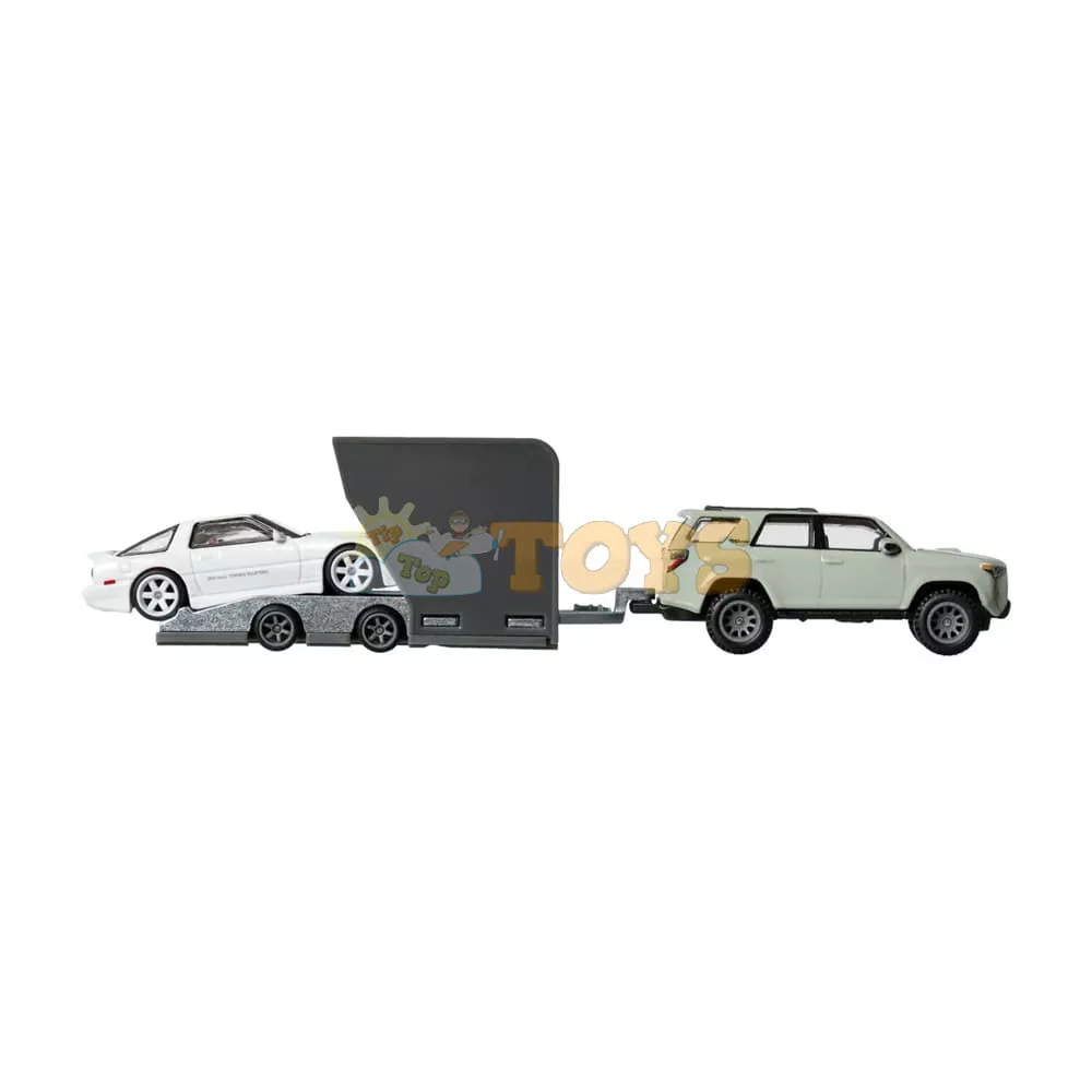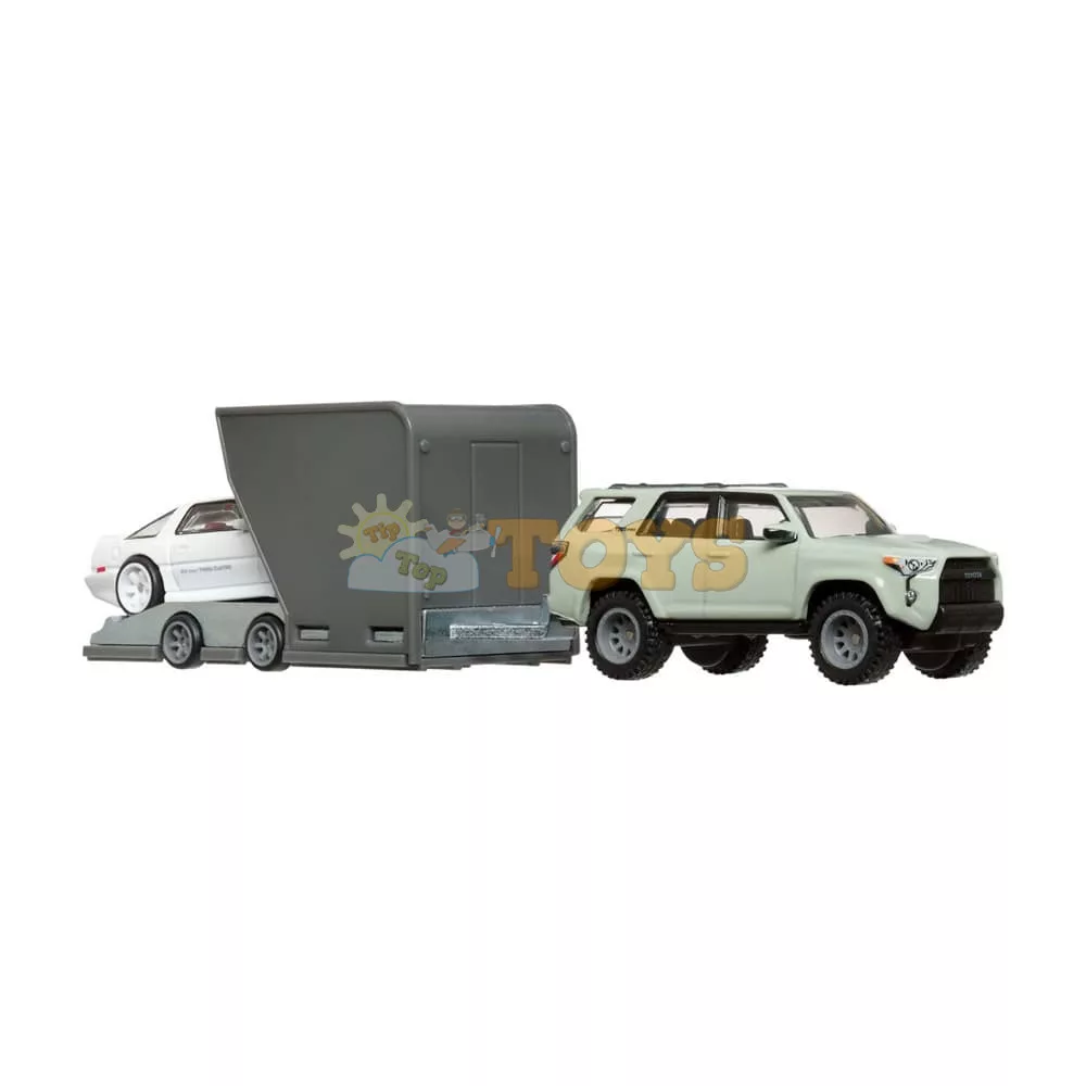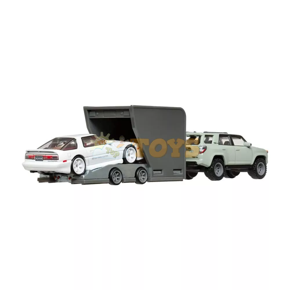 Hot Wheels Premium Transporter Toyota 4Runner and Toyota Supra HRV37. Discover the exclusive Hot Wheels Premium set that brings together two Toyota legends in a spectacular combination. The rugged Toyota 4Runner Transporter and the stylish Toyota Supra HRV37 form a perfect duo for avid collectors and fans of Japanese cars.