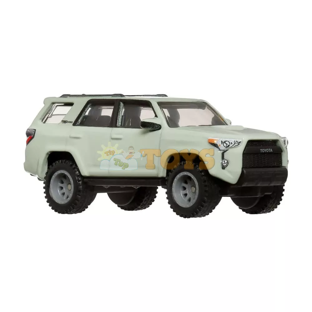 Sturdy and imposing, the 4Runner Transporter faithfully reproduces the original model's iconic design with meticulous premium details. The body is made of high-quality die-cast metal with authentic shade metallic paint. Functional suspensions and wheels with real rubber tires provide a realistic look. The transport platform is fully articulated and features movable ramps for loading/unloading.