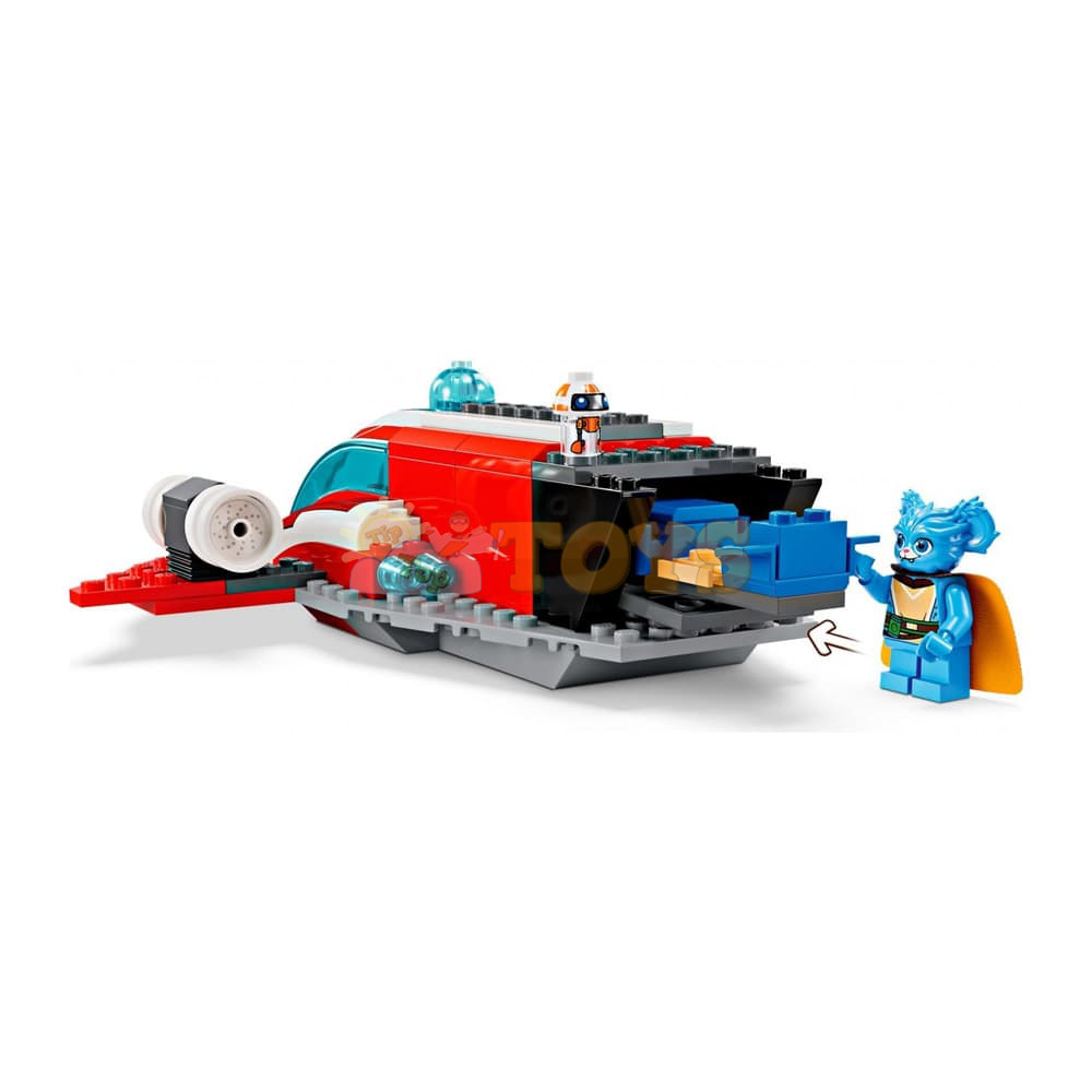 Simple to build – The Crimson Firehawk features a Starter Brick base for easy building and a cockpitwith space for all 3 characters, and the speeder bike fits in the rear of the starship.