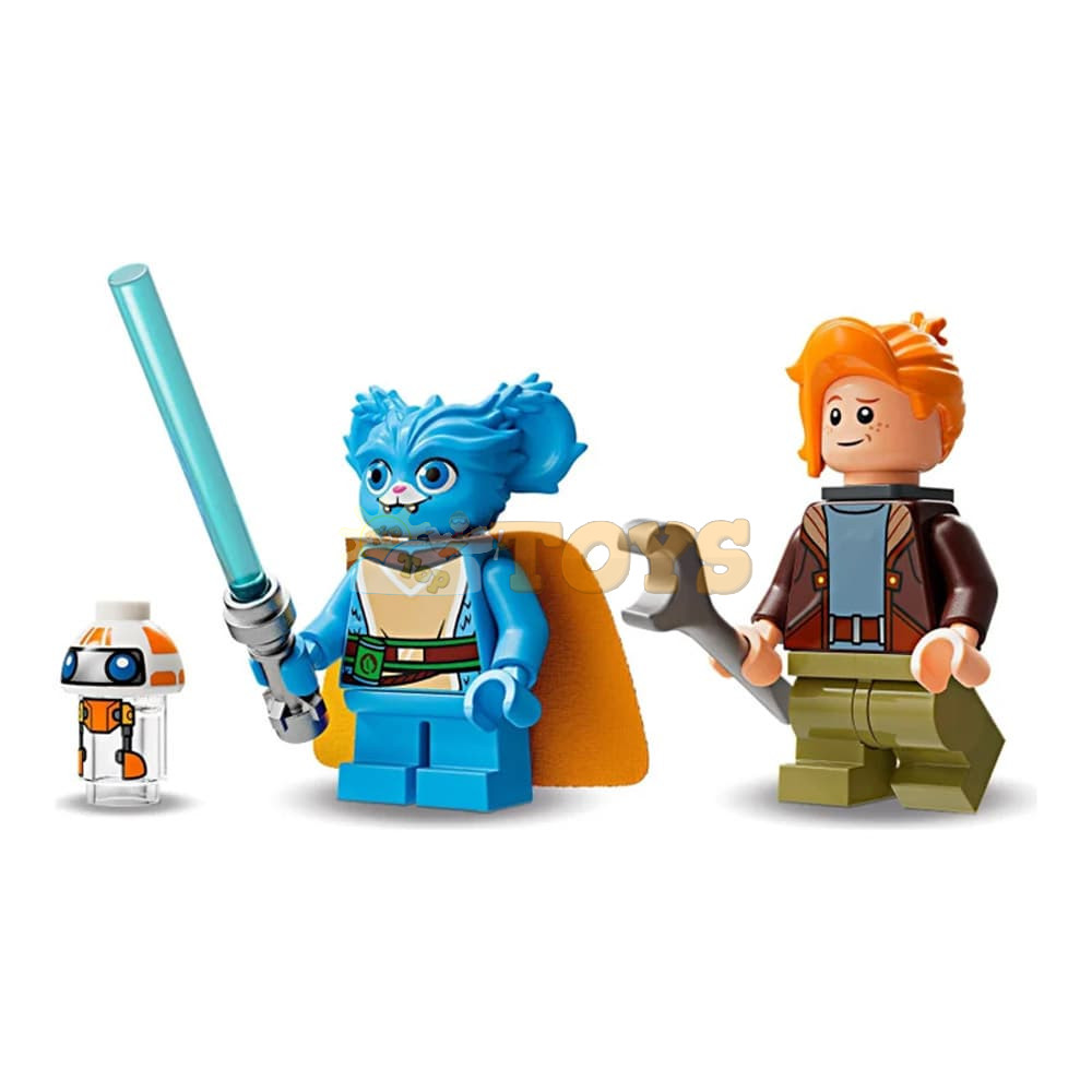 3 LEGO® Star Wars™ characters – A Nash Durango LEGO minifigure with a wrench element, a Nubs LEGO minifigure with a lightsaber, plus an RJ-83 LEGO droid figure that can be attached to Nash’s back.