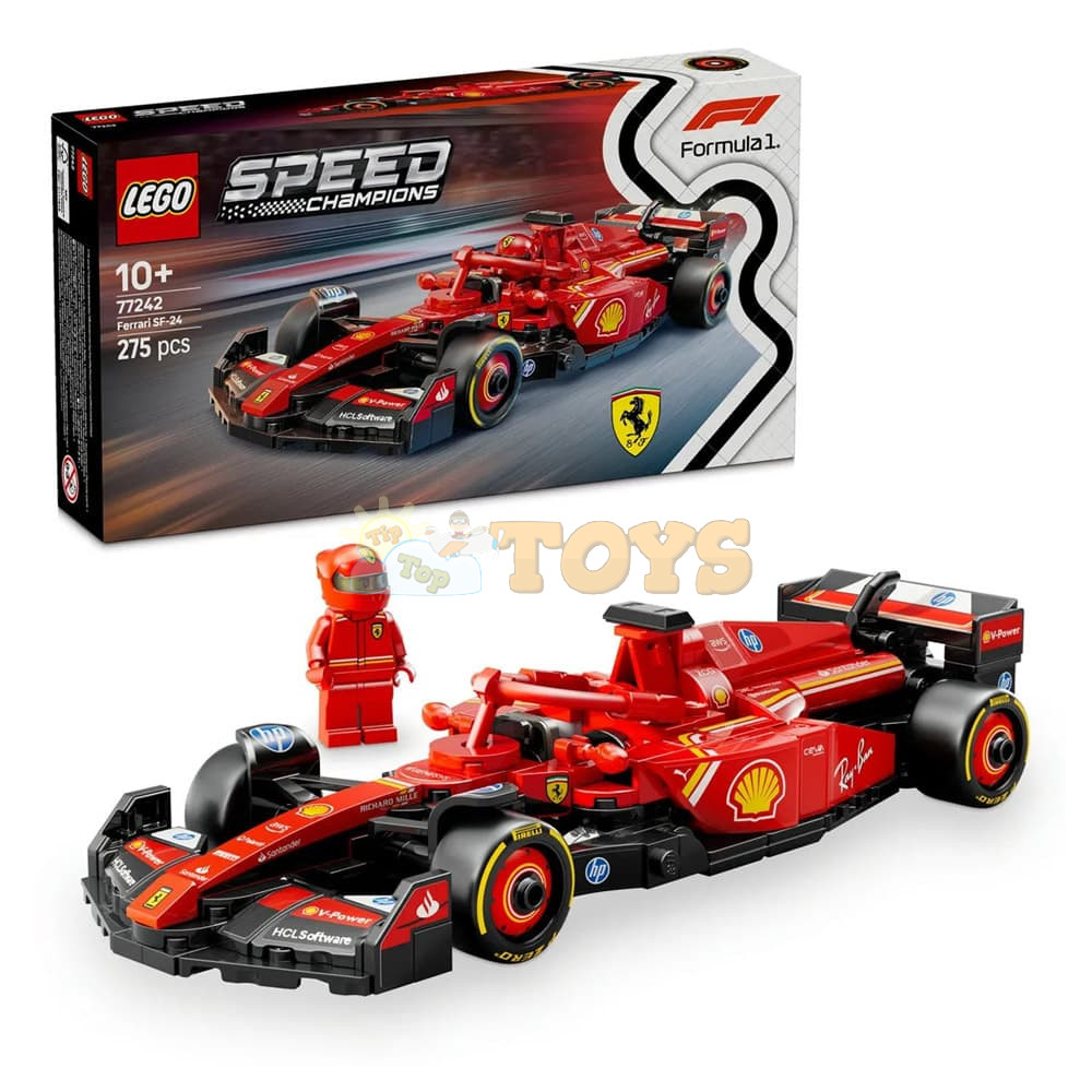Ferrari F1® toy vehicle for kids – Boys and girls aged 10 and up and Ferrari fans can build, display and race the LEGO® Speed Champions Ferrari SF-24 F1 Race Car and driver set.