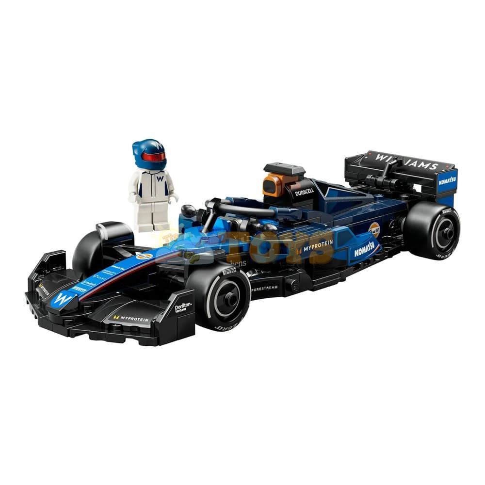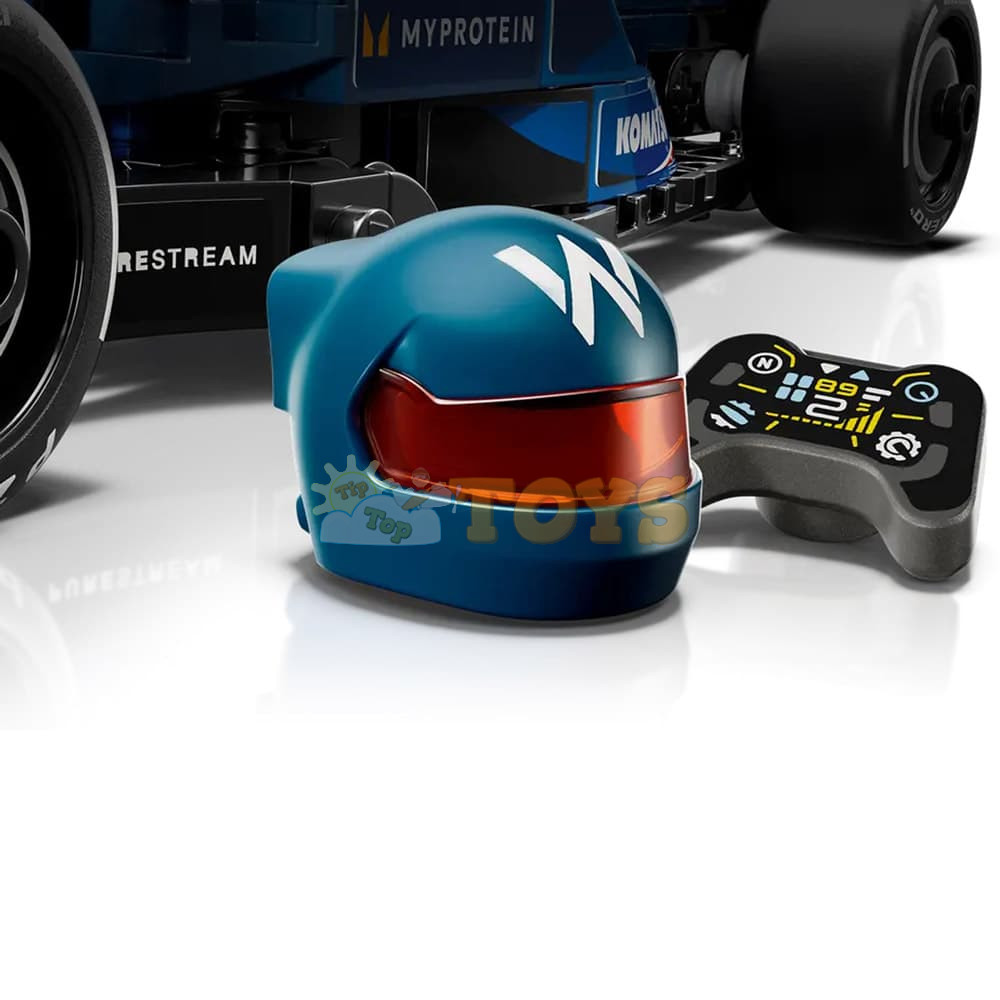 The F1 model car features a cockpit that opens by lifting the halo bar, a rear wing, wishbone suspension, sponsor stickers and wider rear tires imprinted with “Pirelli.” The buildable F1 toy car also comes with a driver minifigure wearing a Williams Racing outfit and a winged helmet to place inside the cockpit.