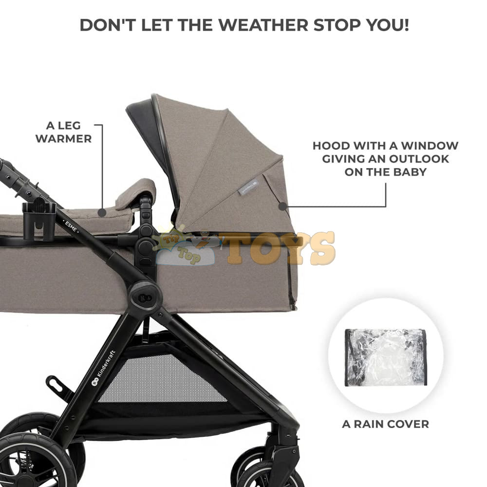 The ESME 3-in-1 SAND BEIGE is a stroller that was created with the comfort of every child in mind. The youngest ones are awaited by a large and spacious carrycot with a ventilation panel and a large canopy with a window for contact with the child. The carrycot is soft and comfortable, ideal for outdoor naps.