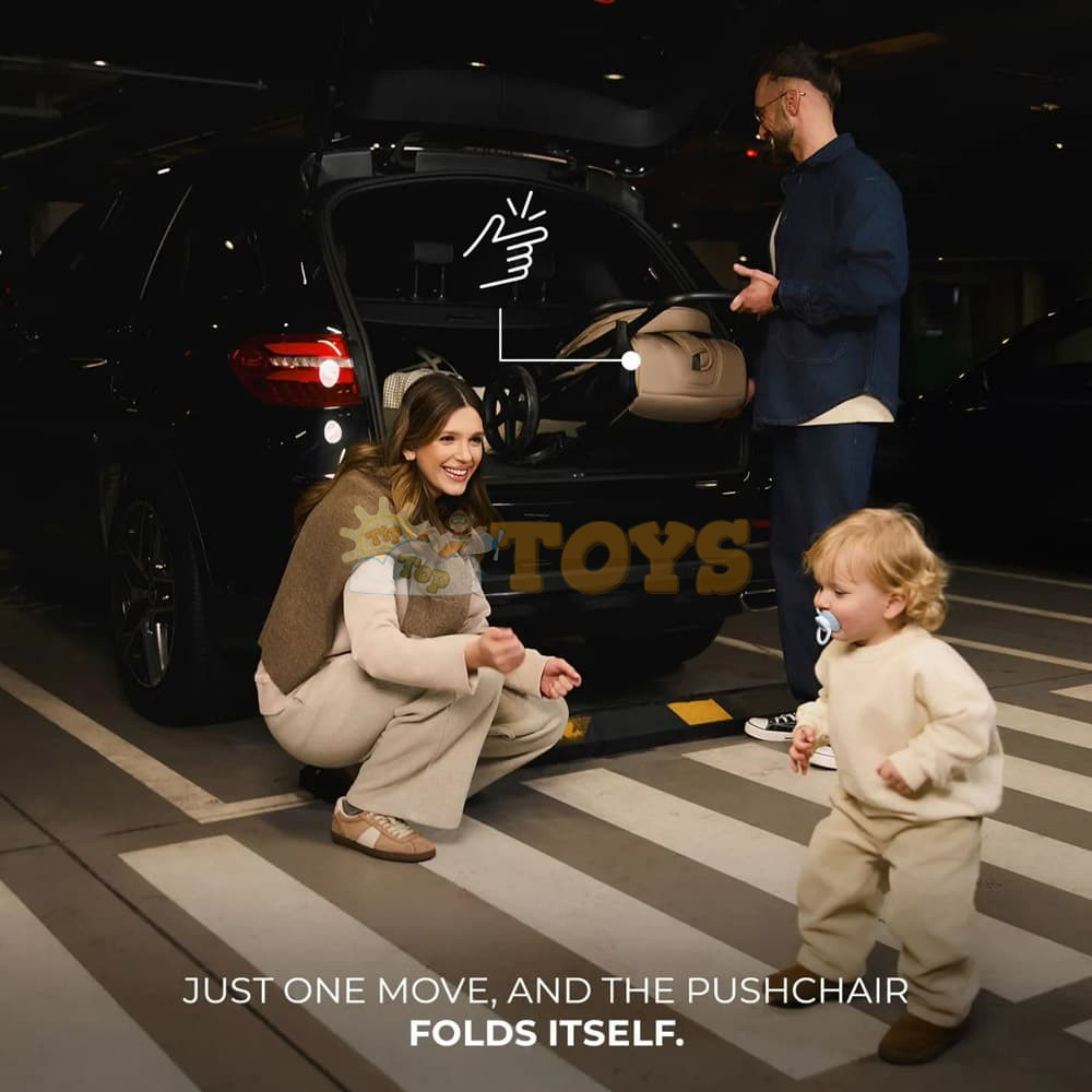 The LOOM LINEN BEIGE stroller stands out with its lightweight frame and automatic folding system, making it extremely practical for storage and transport.