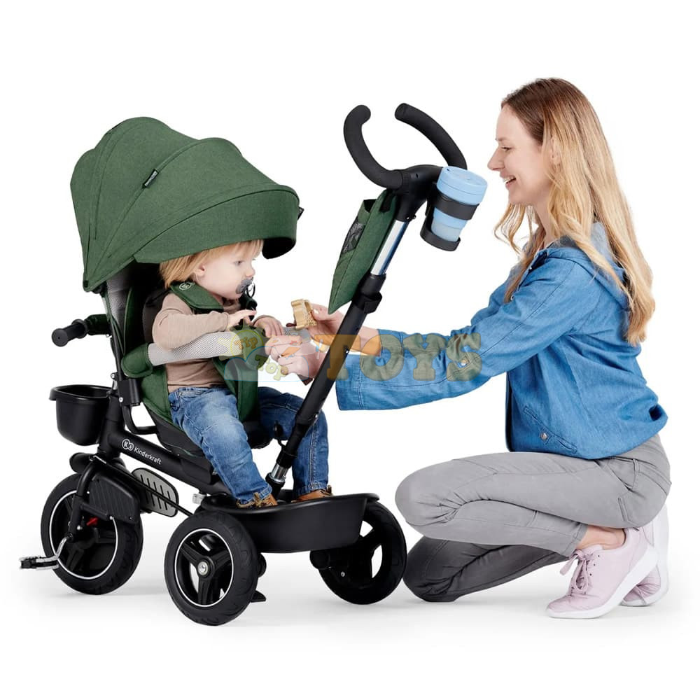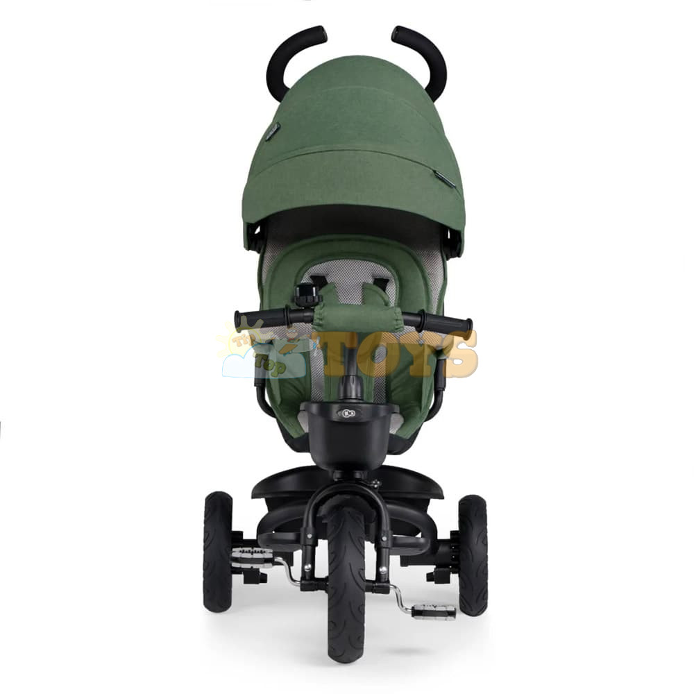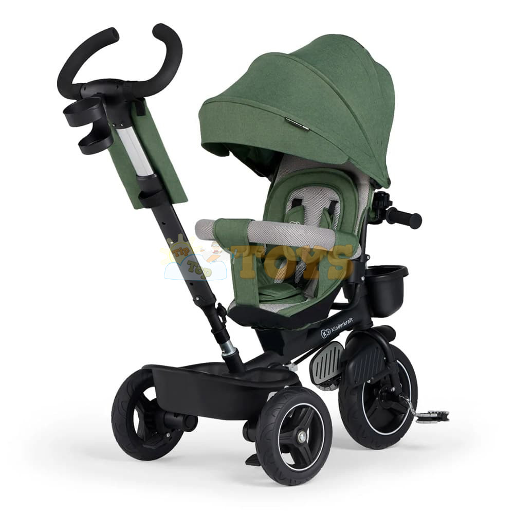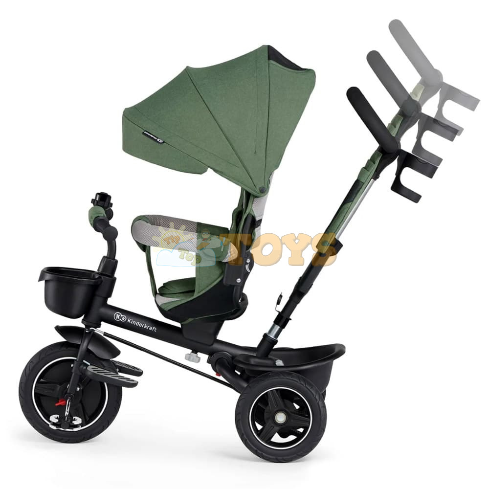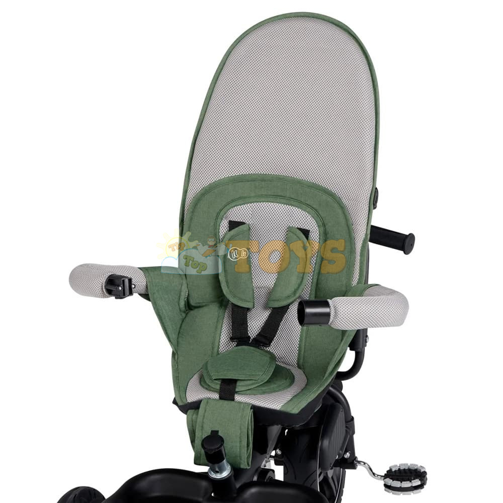 The 360-degree swivel seat allows riding the tricycle facing or with their back to the parent. That's why the SPINSTEP 5-in-1 GREEN is suitable for children from around 9 months old.