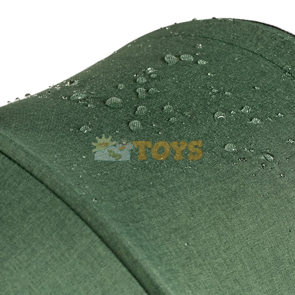 The deep and adjustable canopy is waterproof and has a UPF50+ filter. It protects the child from rain, wind, and sun.
