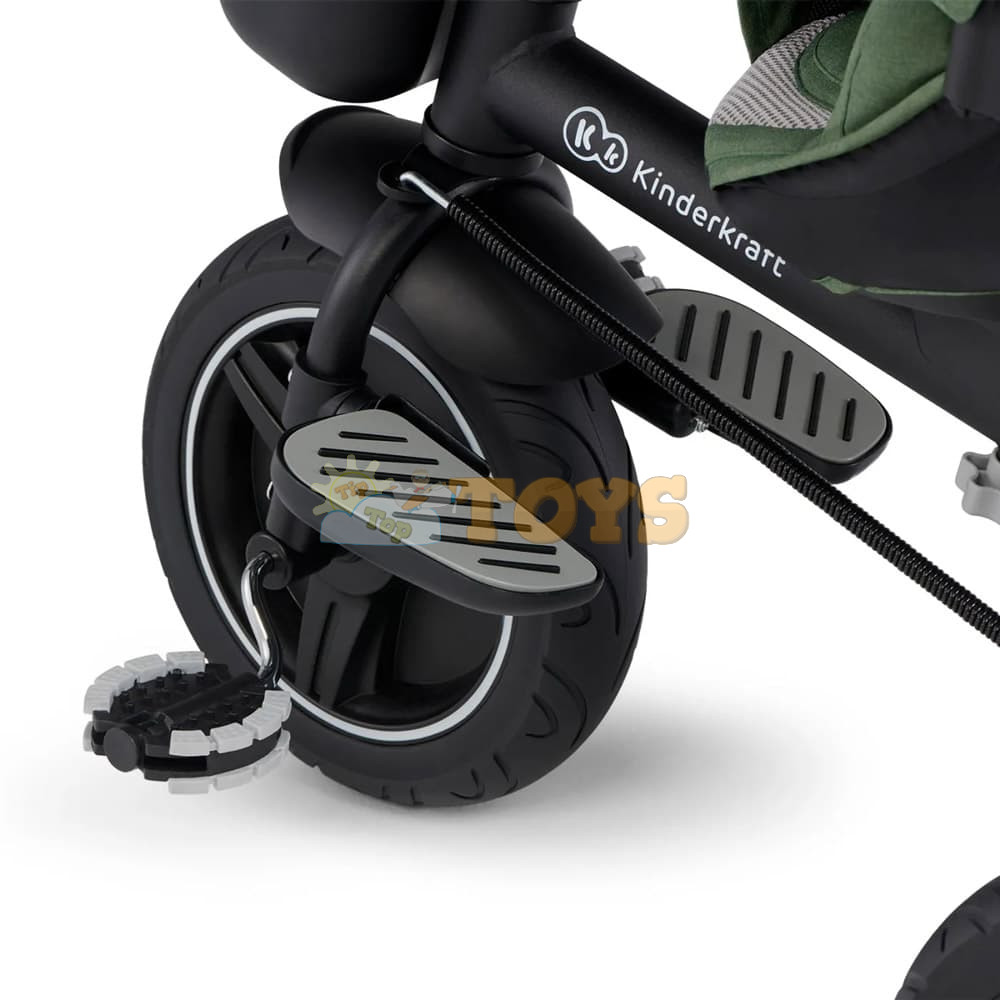 The tricycle is equipped with 3-point safety belts and a detachable barrier, which can be removed when the child is ready to ride on their own. We know that intense pedaling can be tiring for little ones, which is why the SPINSTEP 5-in-1 GREEN tricycle has a comfortable footrest where the child can rest their feet.