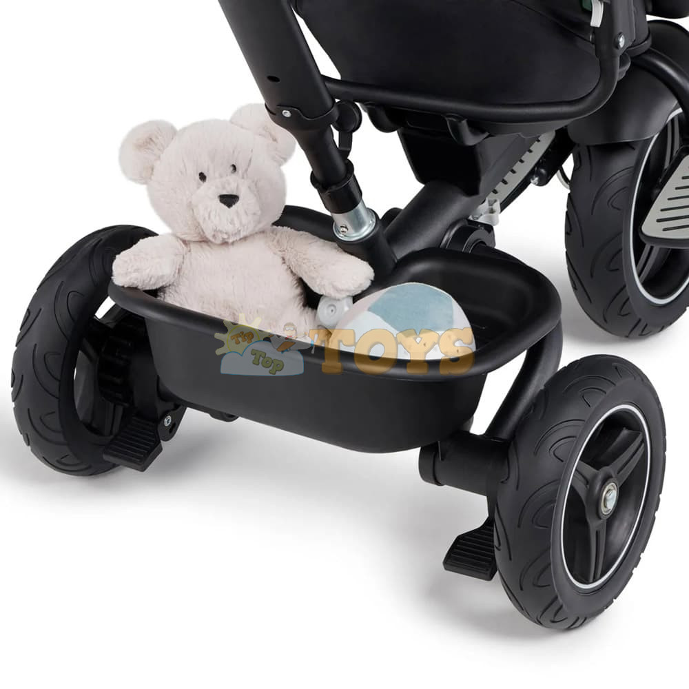 The tricycle has a 360-degree rotating seat that can be positioned facing the parent or facing the direction of travel. The little one will feel more confident when, in the beginning, they can see you.