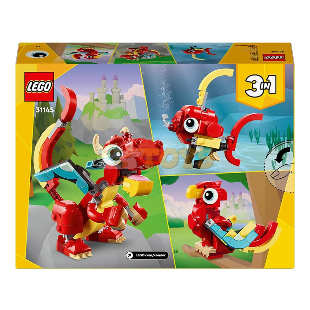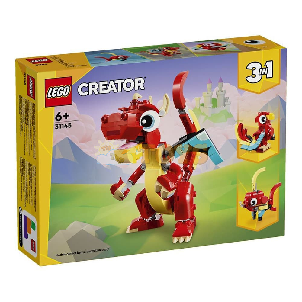 Creative kids aged 6+ can travel to a magical land for fun-filled stories with this 3in1 Red Dragon (31145) animal toy building set. It features a friendly dragon toy, which has big eyes and posable arms, hands, wings, legs, feet, head and mouth, so kids can choose how to use it for playtime adventures and display afterwards.