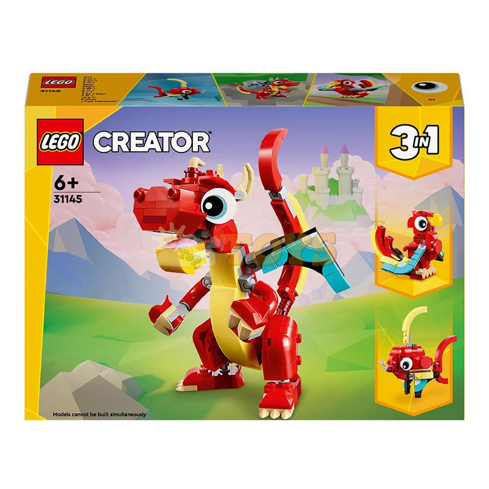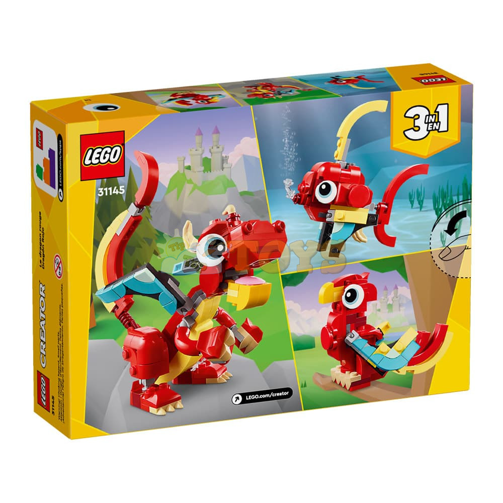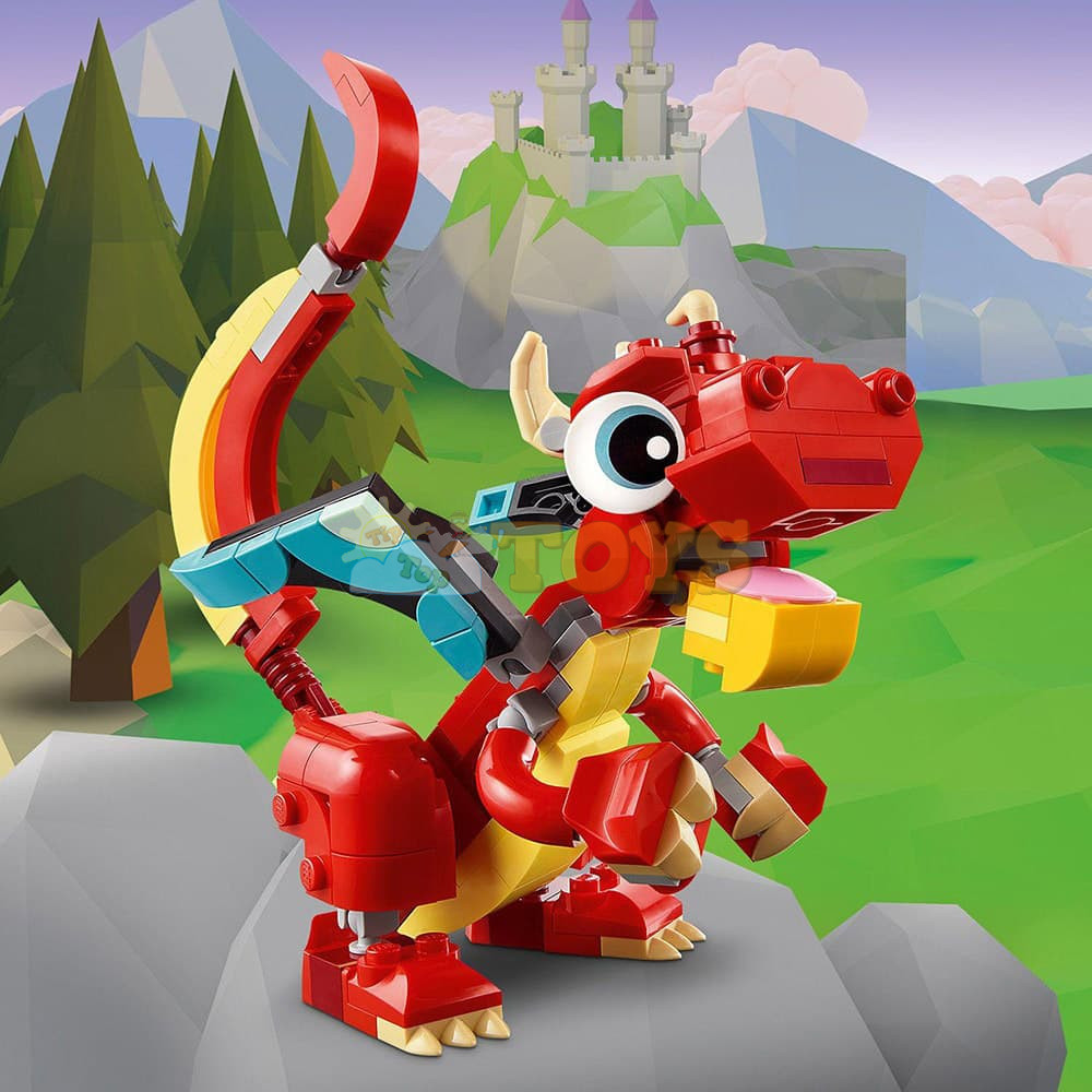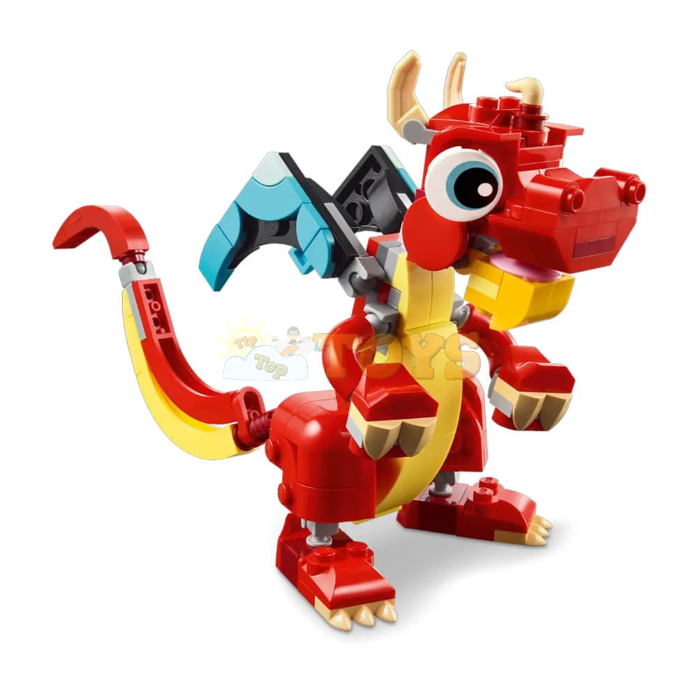 3 magical animal toys in 1 set – Boys and girls aged 6+ can build and rebuild 3 different colorful models with the same set of bricks in this LEGO® Creator Red Dragon toy set.