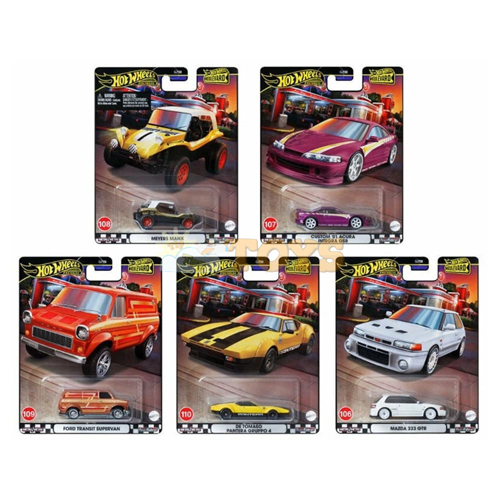 The Hot Wheels Premium Boulevard Series Set 106-110 GJT68-956Y represents an exclusive collection of high-quality die-cast cars, designed for passionate collectors and classic car enthusiasts. This premium set is part of the Boulevard series, renowned for its meticulous attention to detail and faithful reproduction of iconic vehicles.