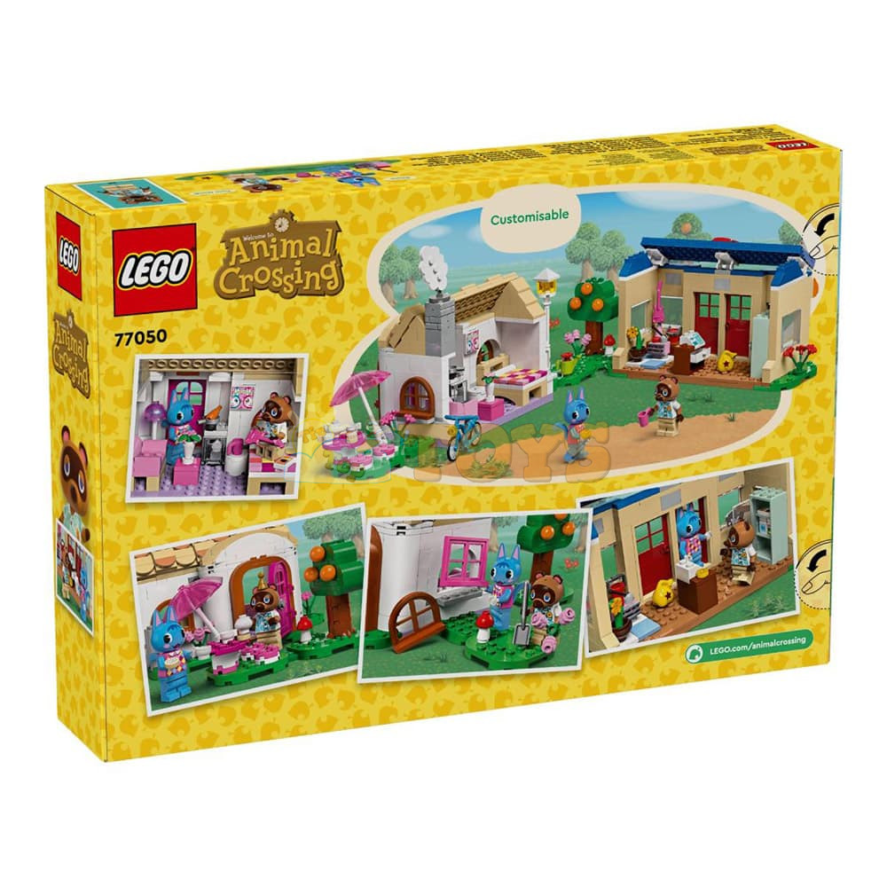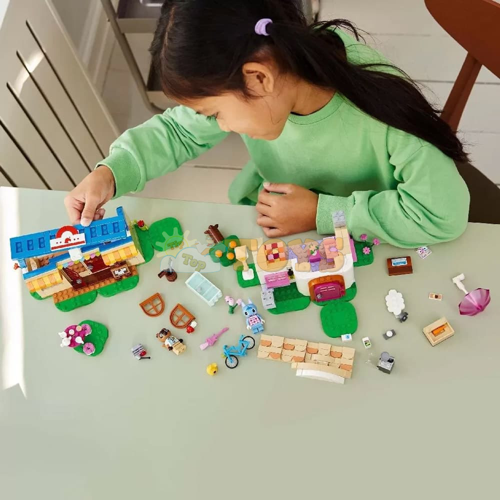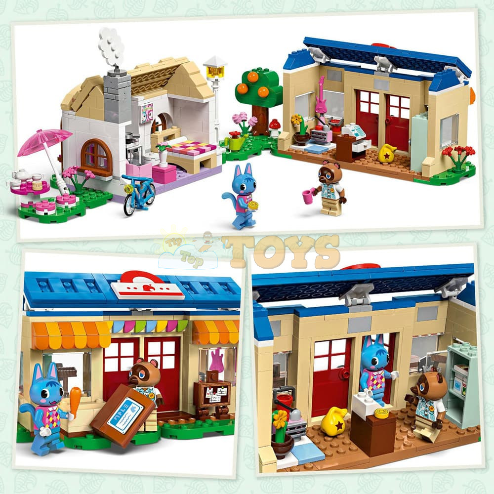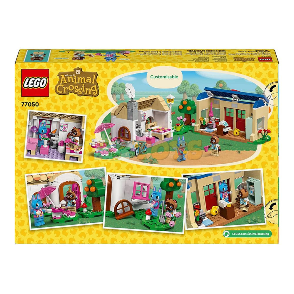Customizable kids’ toy – Buildable toy comes with Rosie and Tom Nook minifigures, 2 iconic Animal Crossing™ buildings, lots of accessories and interchangeable baseplates.