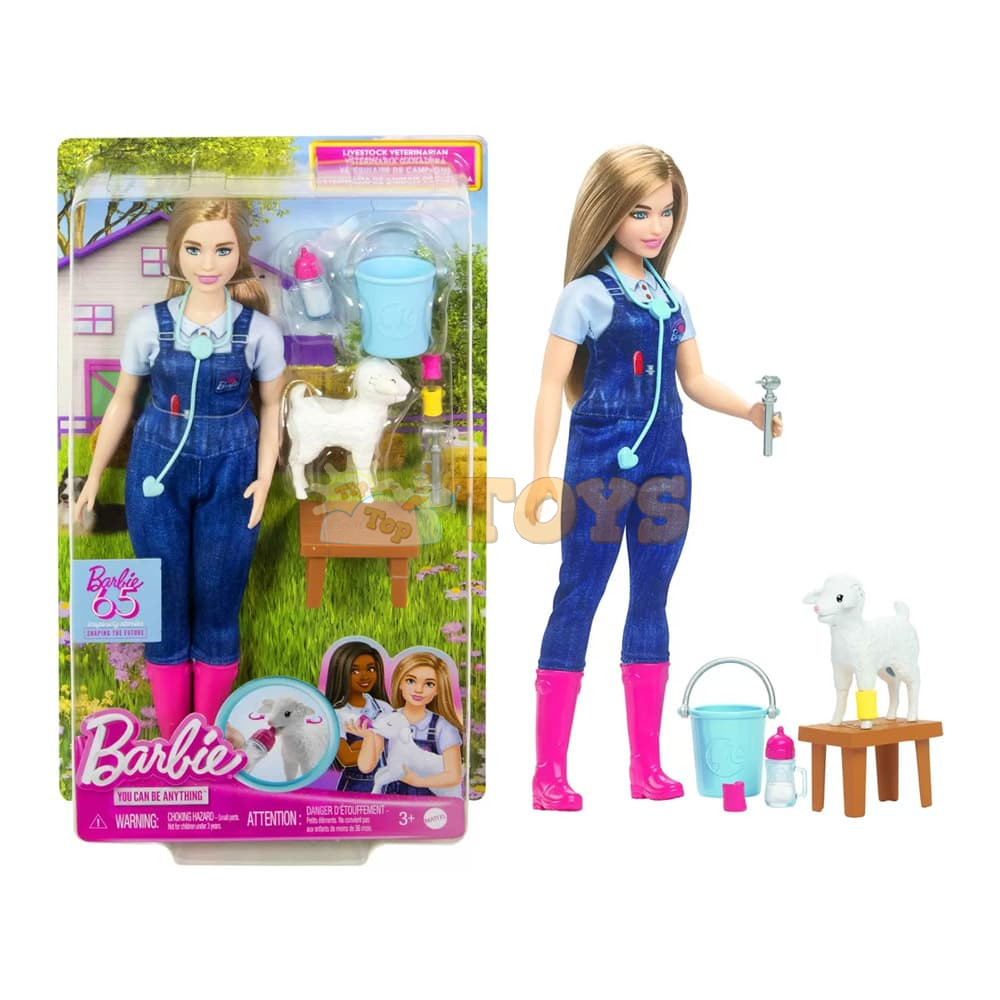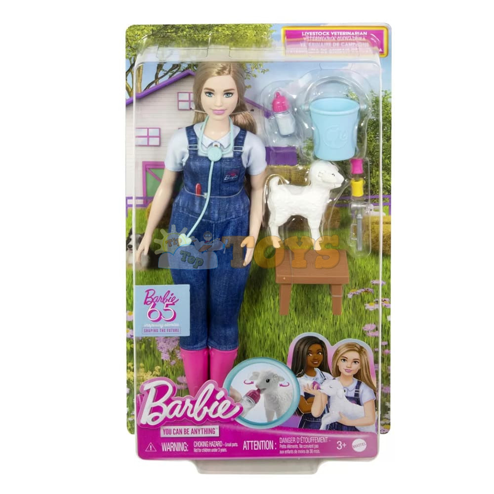 Barbie 65Th Anniversary Careers Farm Vet Doll & 10 Accessories Including Lamb With Moving Ears HRG42