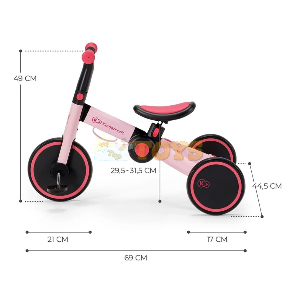 The Kinderkraft 4TRIKE CANDY PINK is designed for children starting from their first year of life. It combines 3 functions: mini walker-bike, balance bike, and tricycle with pedals. To change functions, you don't need any tools, and you can do it in just a few moments – even during a walk.