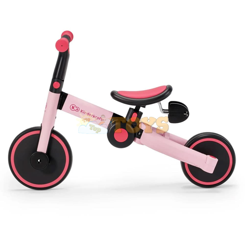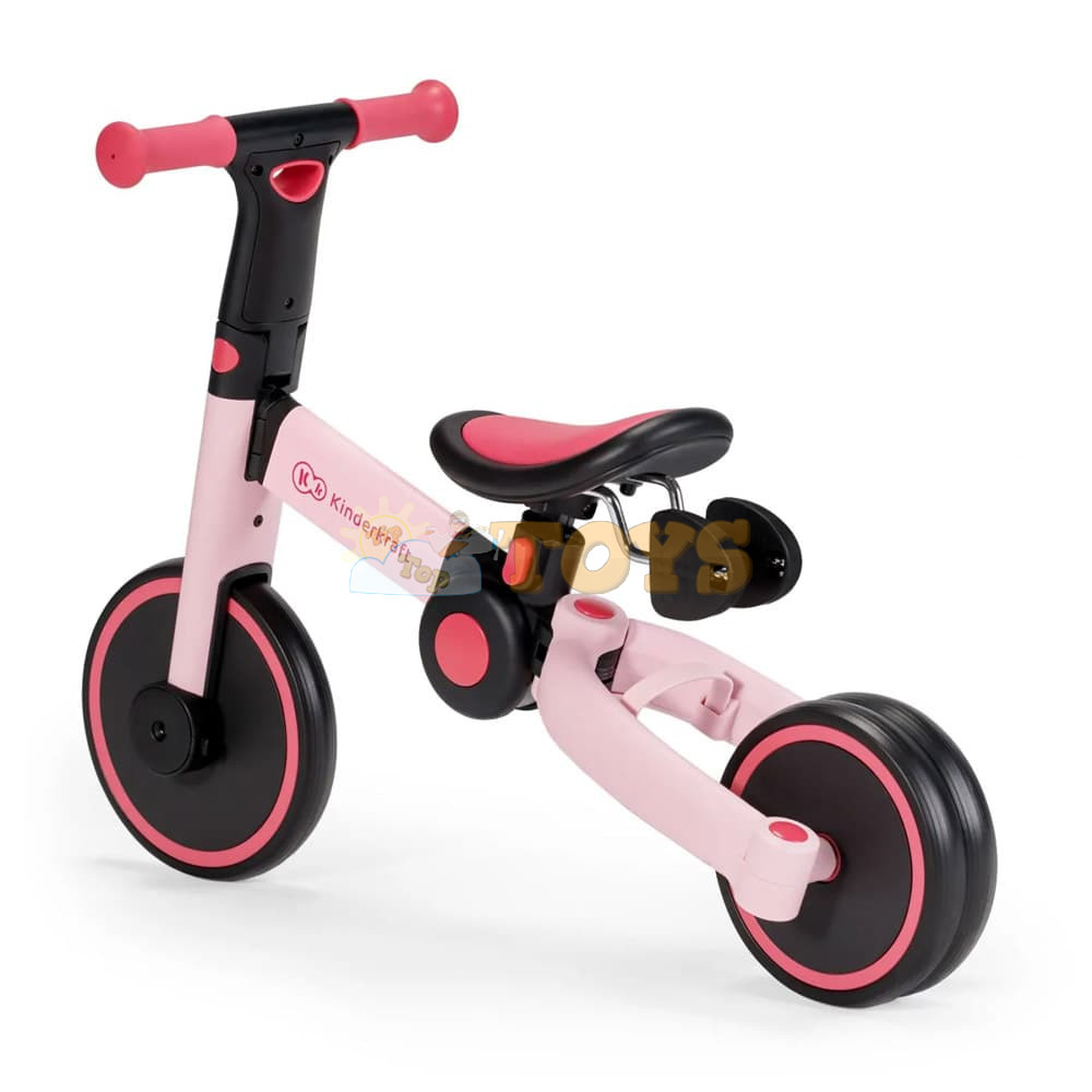 The Kinderkraft 4TRIKE CANDY PINK foldable tricycle is the ideal partner for outdoor play, whether your little one wants to ride a tricycle or run on a mini balance bike. The Kinderkraft 4TRIKE CANDY PINK combines 3 functions: a three-wheel mini walker-bike (for children from 1 year old), a balance bike, and a tricycle with pedals. It's perfect for learning to ride a bike, featuring a safe construction and a limited steering angle. The Kinderkraft 4TRIKE CANDY PINK tricycle adapts in just a few moments to your growing child's abilities. It will instill a love for physical activity and allows for safe bike learning.