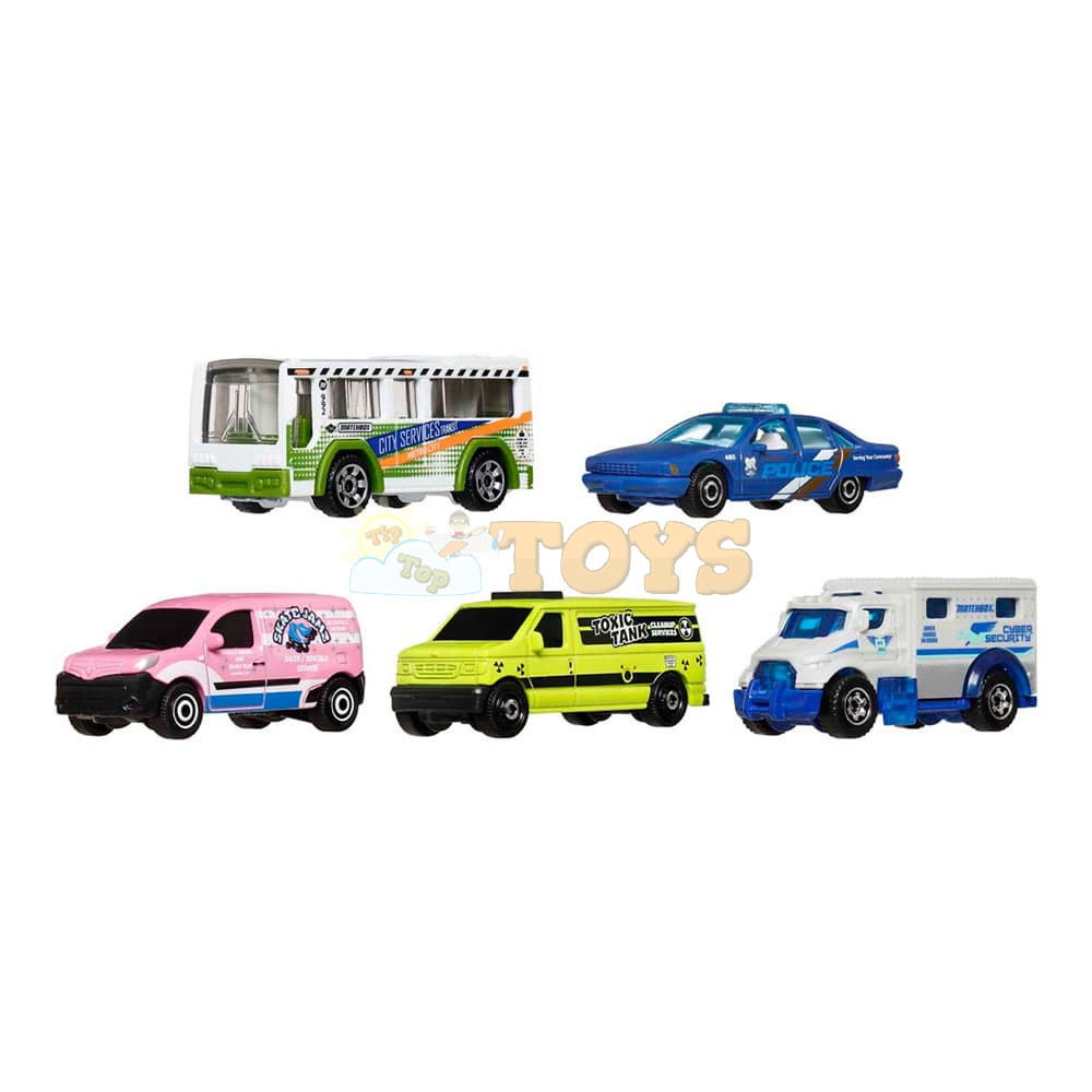 Navigate the urban chaos with the Matchbox MBX City Drivers V JBX21 5-Piece Diecast Car Set, a dynamic pack from the 2025 line that brings together essential vehicles for busy traffic, with reissues and new variants for a fresh metropolitan vibe! This premium set (1:64 scale) is ideal for collectors, city life fans and curious kids (recommended for ages 3 and up), offering metal durability, realistic details and an urban design for immersive play or themed display.