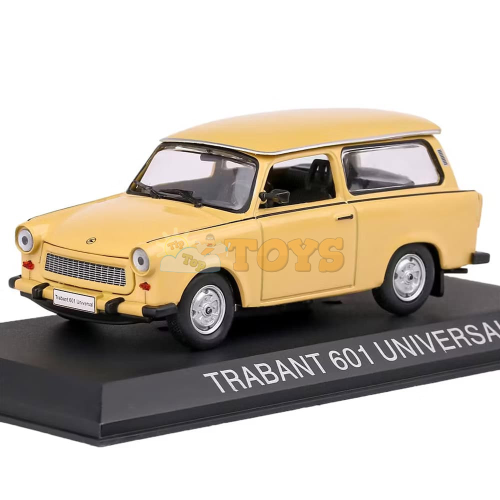 The Mașini de Legendă – Trabant 601 Universal yellow model is the perfect choice for any enthusiast of East German automotive history – the symbol of freedom with 26 HP and bluish smoke, pure nostalgia and premium quality at a collector's price!
