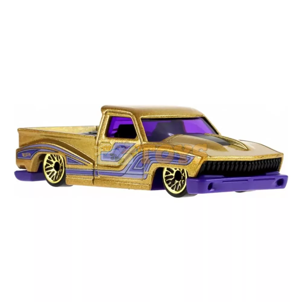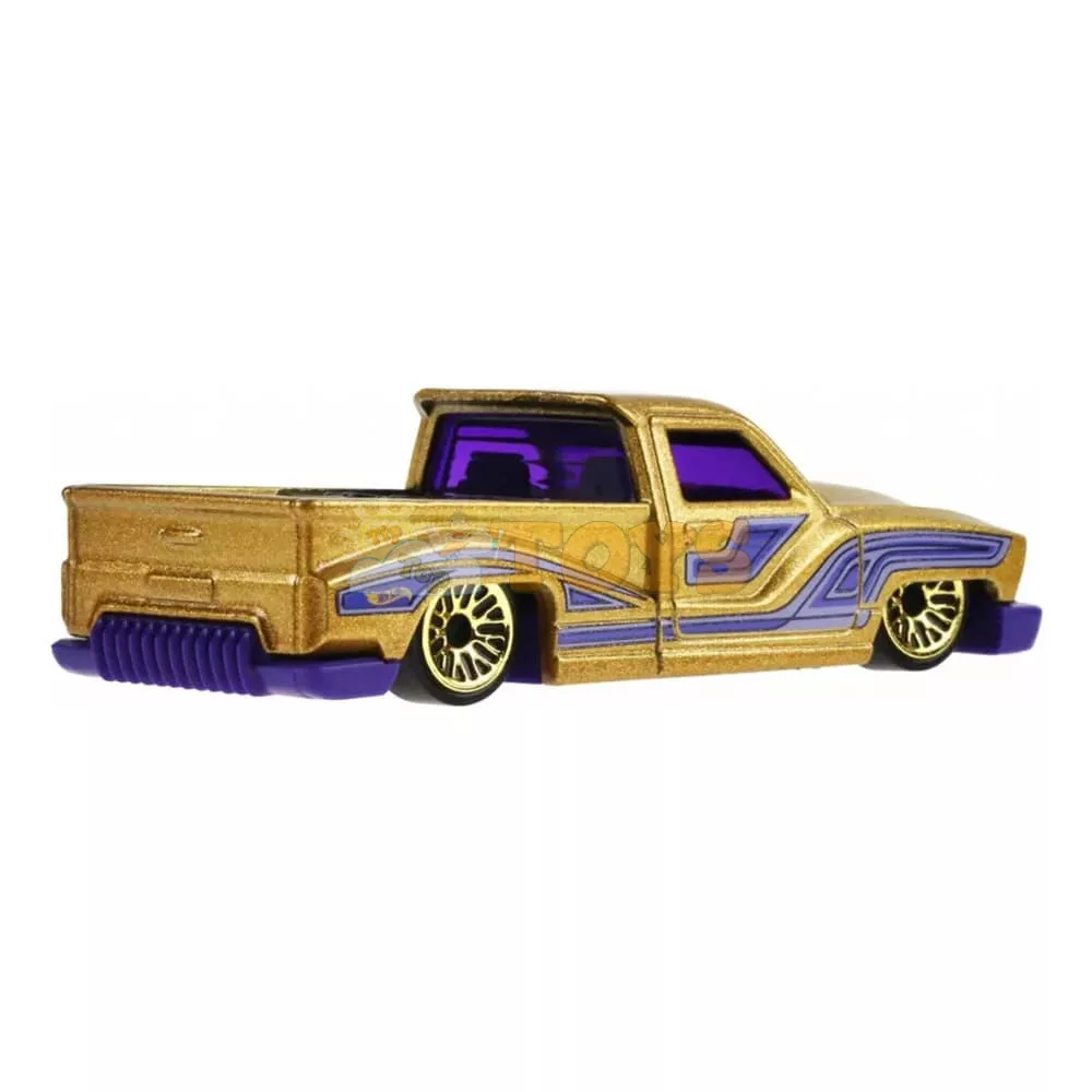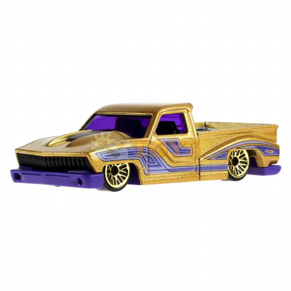 Bounce'N Bass is the first new casting in 2026 in the Layin' Low series - a tribute to classic lowriders with a big sound and exaggerated style! The gold version with purple graphics stands out with its shiny metal flake and fine details (including the mini-truck easter egg in the seat!). It is ideal for recreating cruising scenes, lowrider-themed collections or as a standout piece alongside other Hot Wheels custom models. Fans love the fun vibe, original design and the fact that it's a "new model" - a must-have for 2026 enthusiasts and custom car culture!
