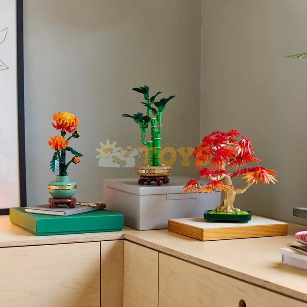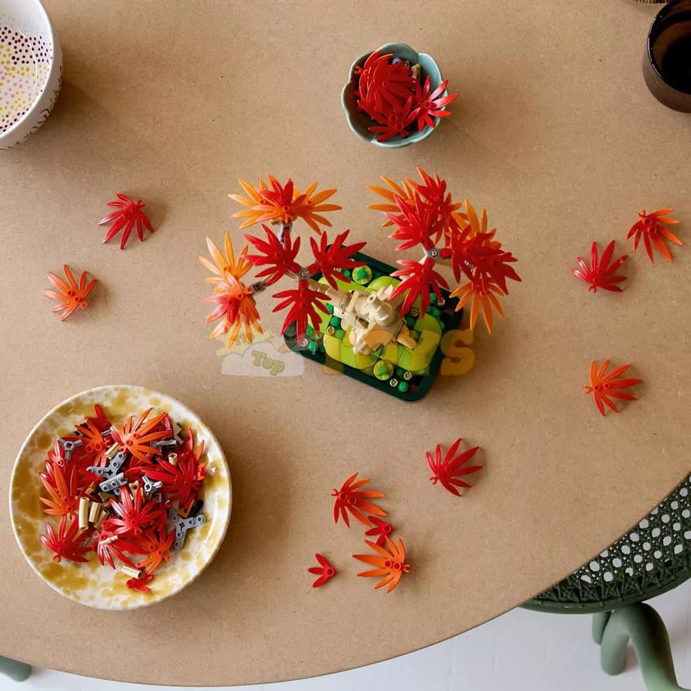 Capturing the beauty and vibrancy of real red maple bonsai trees, this LEGO plant has red and orange leaves and sits in a dark green plant pot. Relax and unwind as you create the plant before displaying it proudly as home decor or office decor that will bring a touch of calm and serenity wherever it’s placed.
