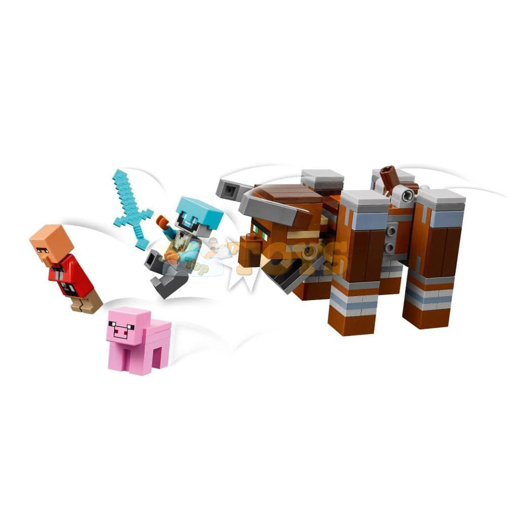 Posable figures – This interactive LEGO® Minecraft® toy includes Space Sentinel, Raid Captain, mason villager and Vindicator minifigures, and buildable ravager and pig figures