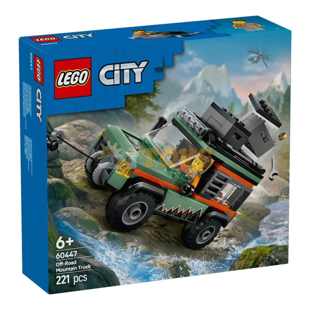 Kids can head for the hills with the LEGO® City Off-Road 4x4 Mountain Truck (60447) adventure toy for ages 6 and up. This tough truck is loaded with cool features and equipment for off-road exploration, including roof storage boxes, tools, rugged tires and a working winch for tackling steep inclines. Flip the vehicle snorkel and up pops the hood for engine repairs! Just add the adventurer minifigure and let the play begin.